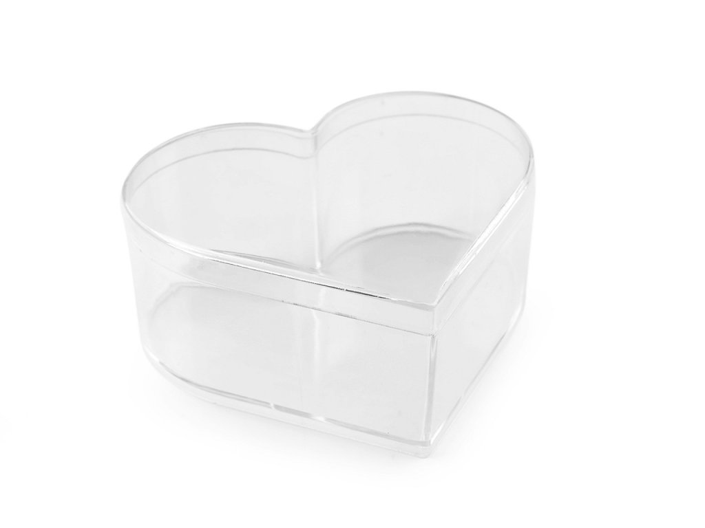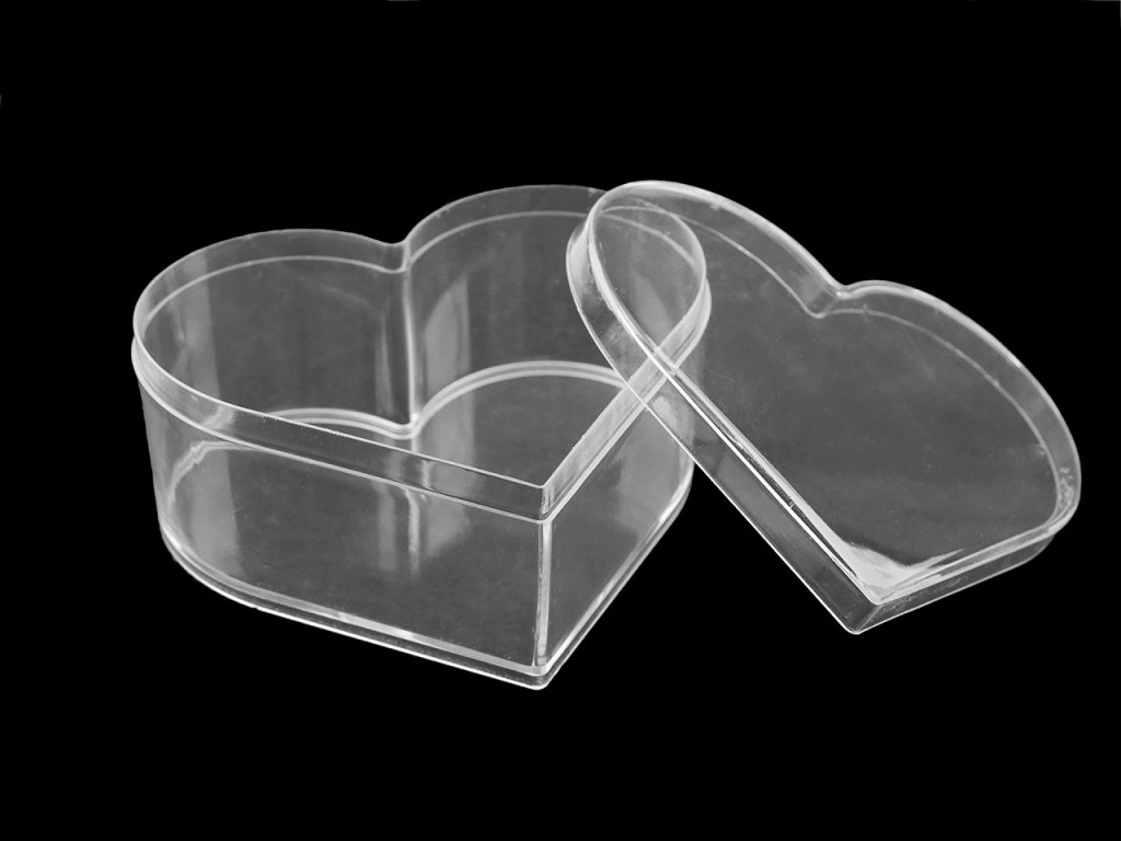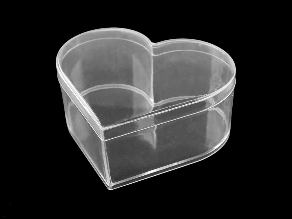 Praktická plastová krabička s víkem má tvar srdce. Můžete ji použít na uskladnění malých kreativních potřeb, např. nití, stužek, scrapbookingových pásek apod. Slečny je mohou využít na uložení drobné kosmetiky, sponek, gumiček apod. Je transparentní, dovnitř je perfektně vidět. Víko je nasazovací, dobře drží, ale nemá žádnou pojistku proti otevření.
