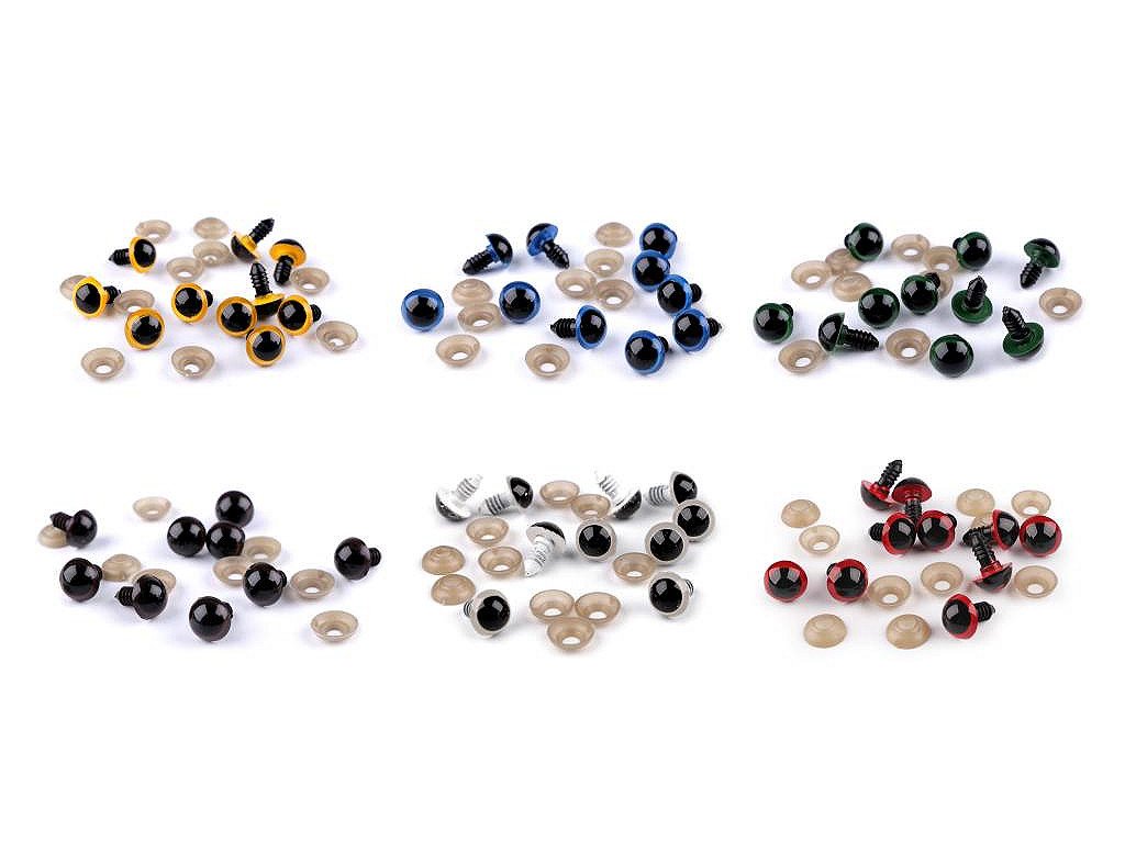 Polokulatá plastová očka využijete při výrobě nejrůznějších postaviček či zvířátek. Mají závit, který se provleče materiálem, a z druhé strany se pak nacvakne pojistka, která oči bezpečně připevní na místo.