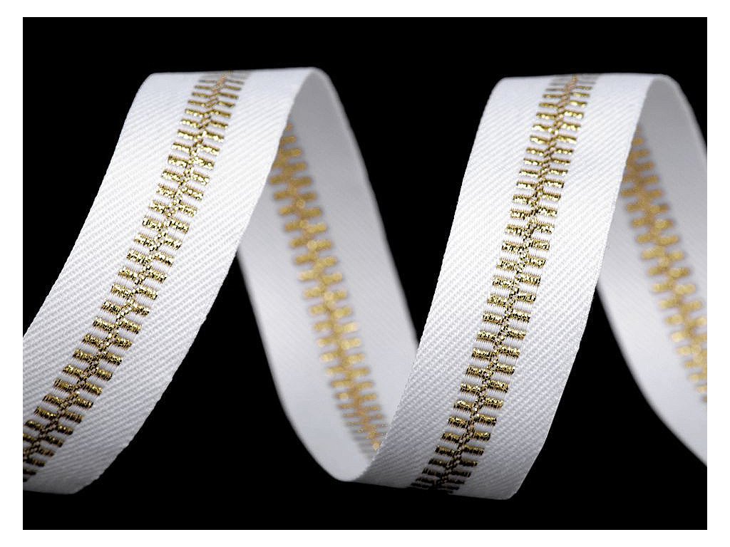 Lampas / oděvní stuha s lurexem šíře 20 mm imitace zipu