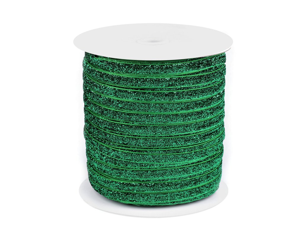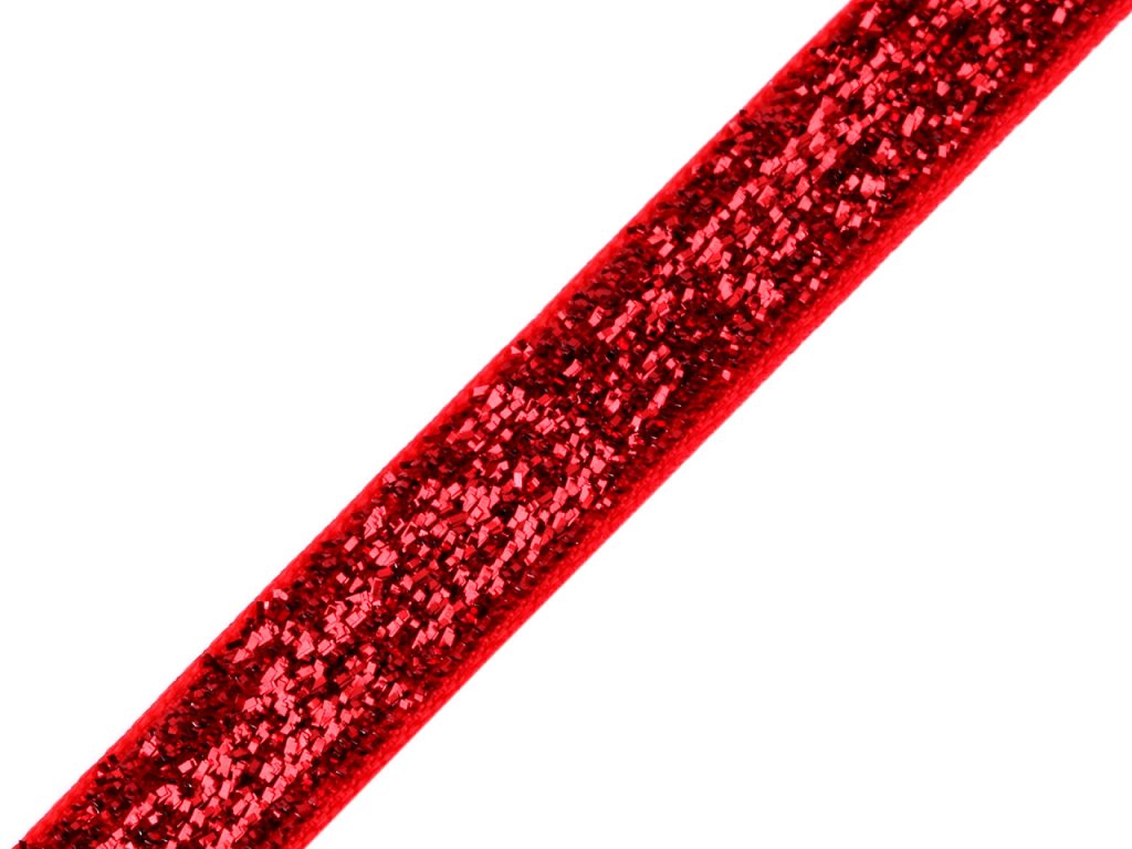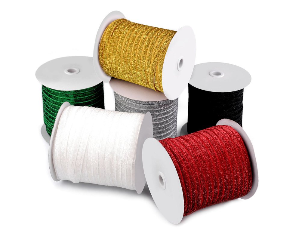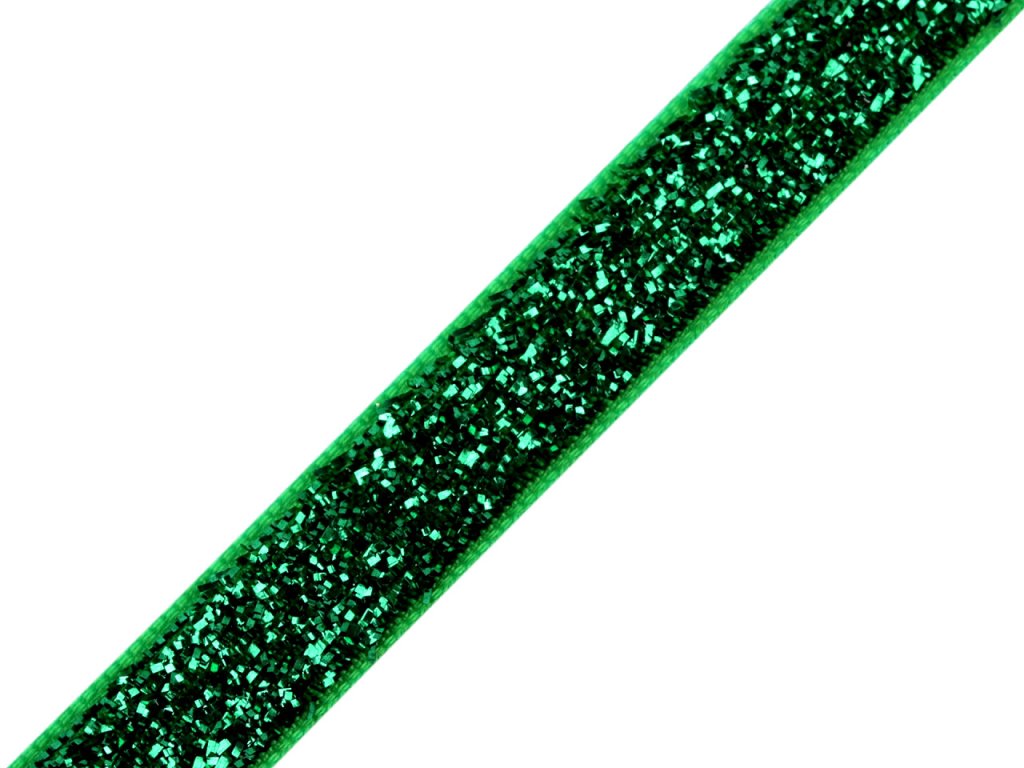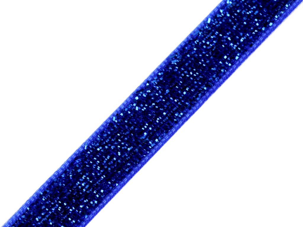 Třpytivá sametová stuha má horní stranu ozdobenou lurexem. Je jednostranná, velice kvalitní.