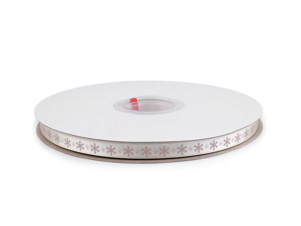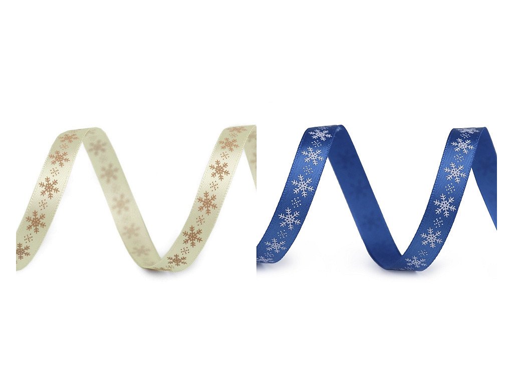 Saténová stuha s potiskem sněhových vloček. Potisk je jednostranný.