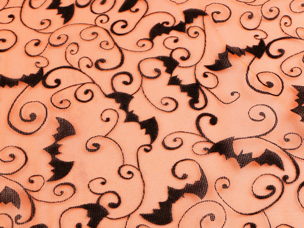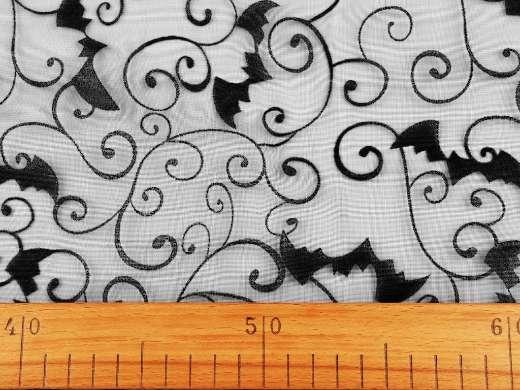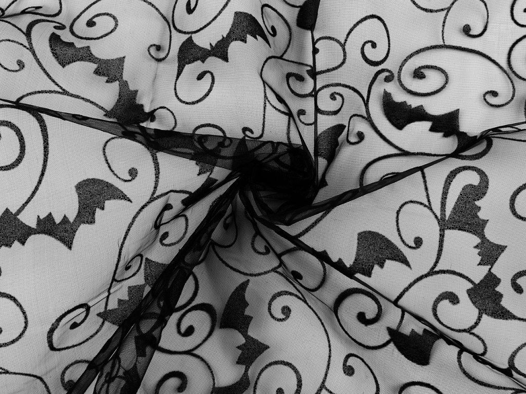 Organza s motivem netopýrů je skvělá k halloweenskému aranžování, ozdobení stolu, k výrobě karnevalových kostýmů nebo dekoračních postaviček (čarodějnic, ježibab, skřetů apod.).