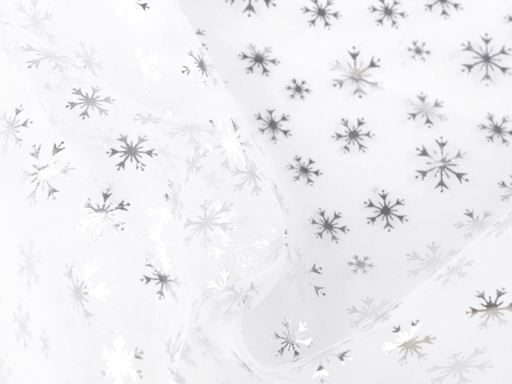 Jemnou organzu zdobí metalický potisk sněhových vloček. Využijete ji k šití karnevalových kostýmů (ledová princezna), k vánočnímu aranžování a dekorování i k výrobě andělů.