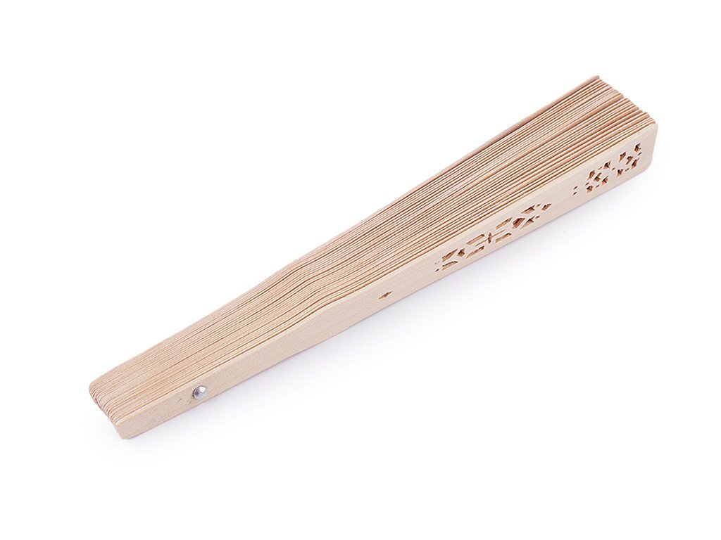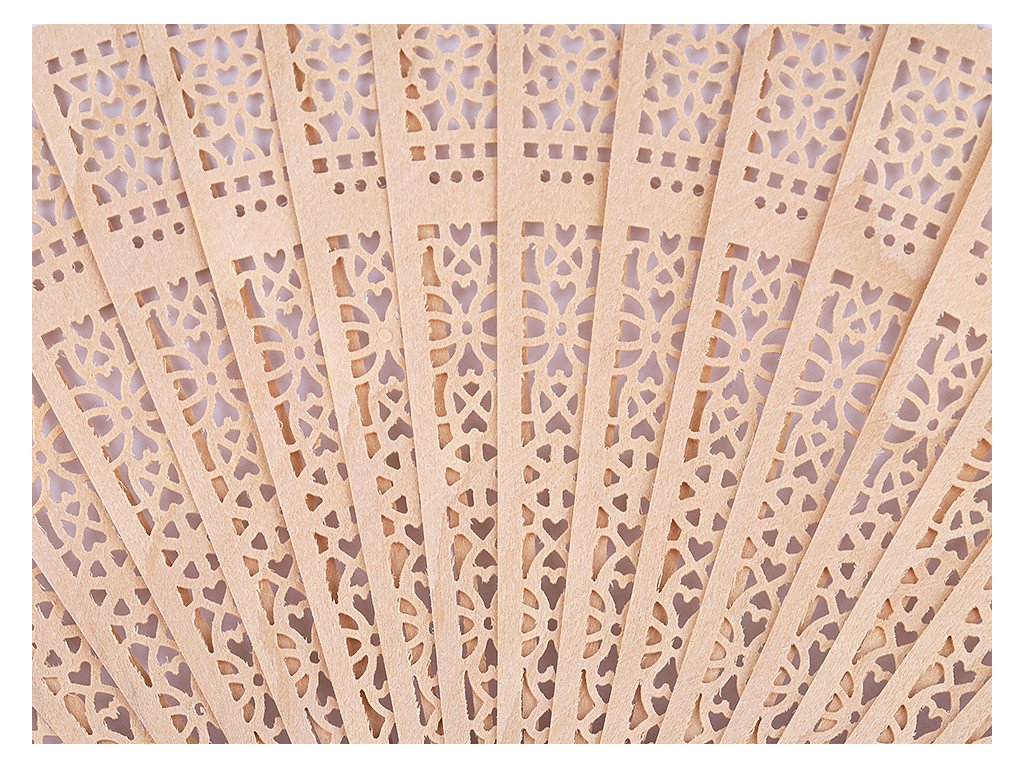 Vějíř z bambusového dřeva vás okouzlí svými vyřezávanými ornamenty. Má nízkou hmotnost. Využijete ho na karnevaly, tématické večírky, do fotokoutku nebo k aranžování. Můžete si ho i dotvořit podle svého vkusu, je vhodný i k domalování.