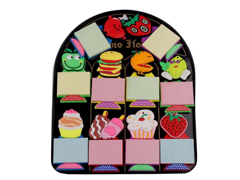 Silikonové magnetky s papírovými bločky působí roztomile, upoutají pozornost a mají precizně zpracované detaily. Lze je opakovaně upevnit na jakoukoliv kovovou plochu, např. na chladničku, nástěnku, mikrovlnnou troubu atd.