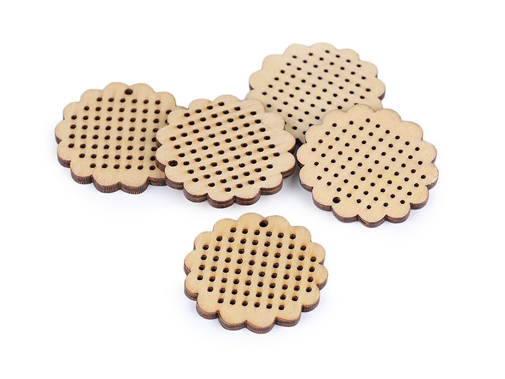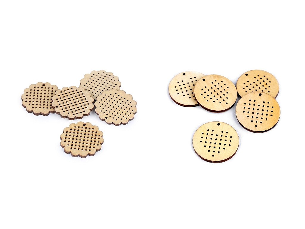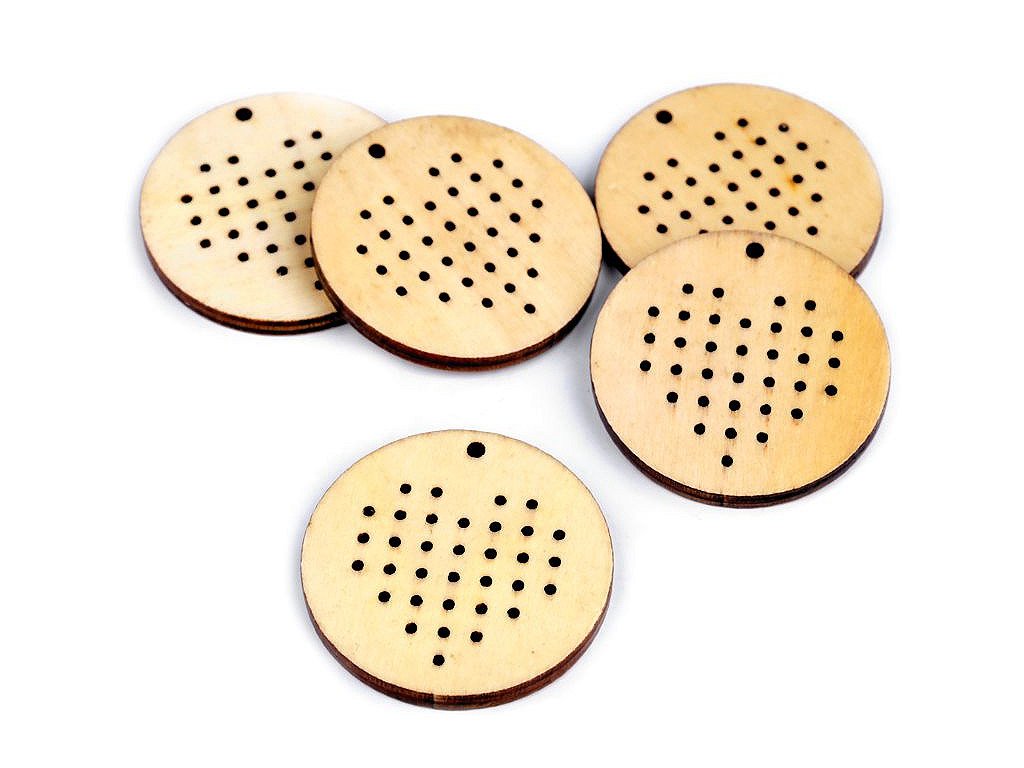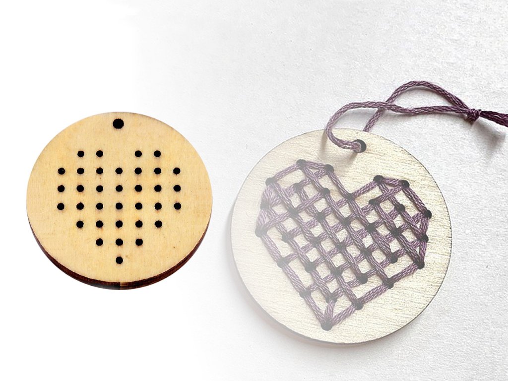 Malý dřevěný rámeček je vhodný na tvoření drobných vyšívaných obrázků křížkovou výšivkou. Hotové obrázky v rámečku můžete nosit jako přívěsek na krku nebo s nimi můžete ozdobit dárky apod. Rámeček je přesně vyřezaný laserem, průměr jednotlivých otvorů je 1,2 mm.