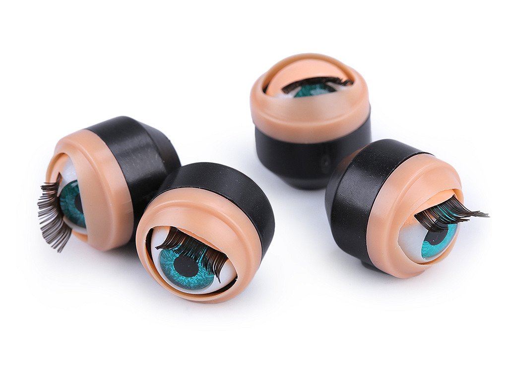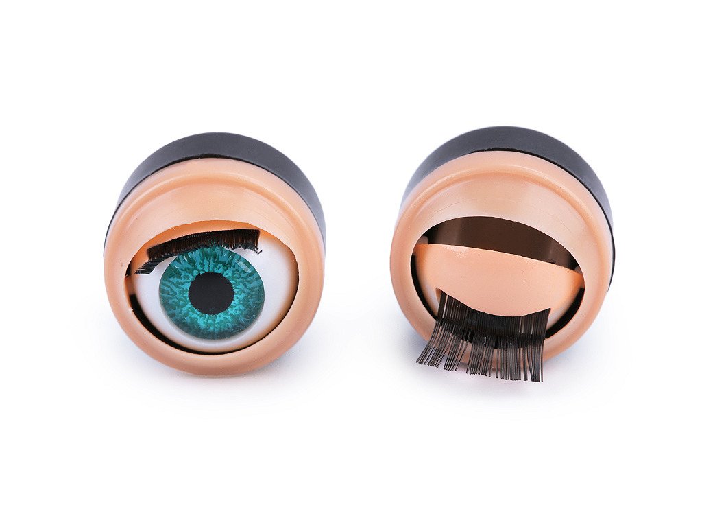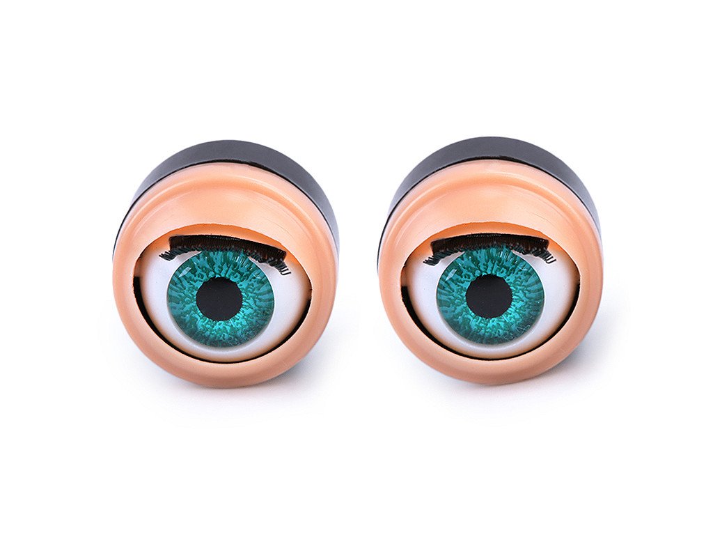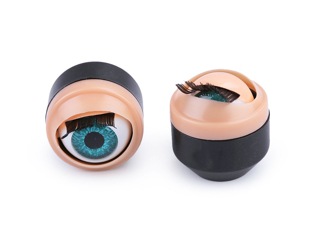 Plastové mrkací oči dodají téměř živý výraz vašim postavičkám a zvířátkům. Mají nepravidelný kulovitý tvar. Je nutné zafixovat je v očním důlku např. lepidlem, tavící pistolí apod. Duhovka se i s řasami otáčí uvnitř pouzdra. Při vzpřímené poloze postavičky jsou oči otevřené, při jejím položení se oči zavřou.
