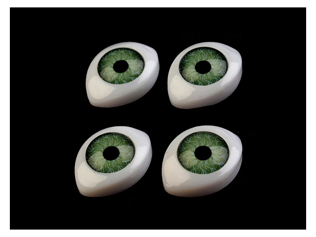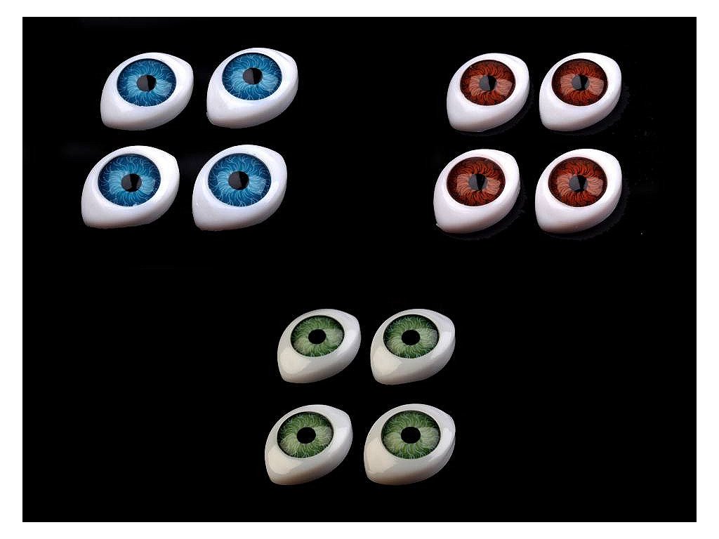Vnitřní průměr samotného oka 9 mm. Oči lze přilepit pomoci textilního lepidla.