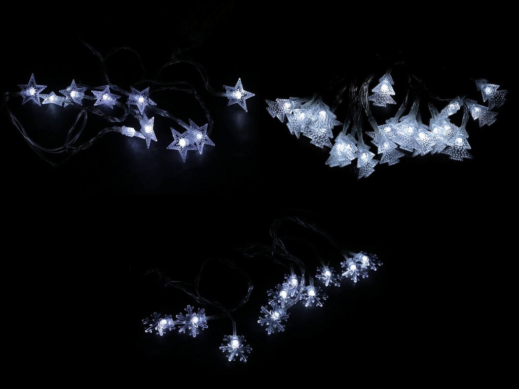 LED světelný řetěz vločky, hvězdy, stromečky na baterie