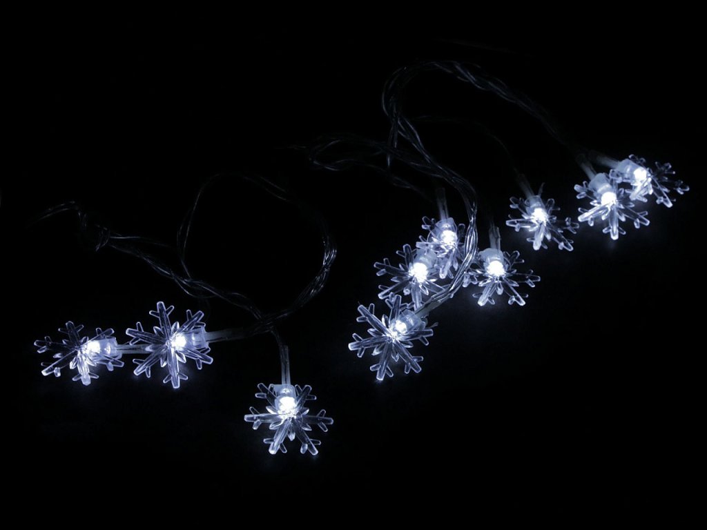 Na světelném řetězu najdete 10 nebo 20 LED diod. Rozestup mezi jednotlivými světýlky je 15 - 20 cm. Řetěz svítí, nebliká.