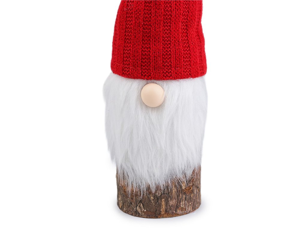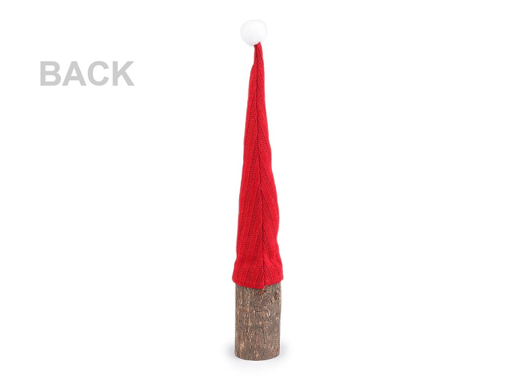 Základ skřítka je z dřevěného špalíku, který perfektně drží stabilitu. Dominantou na skřítkovi je dlouhá čepice.