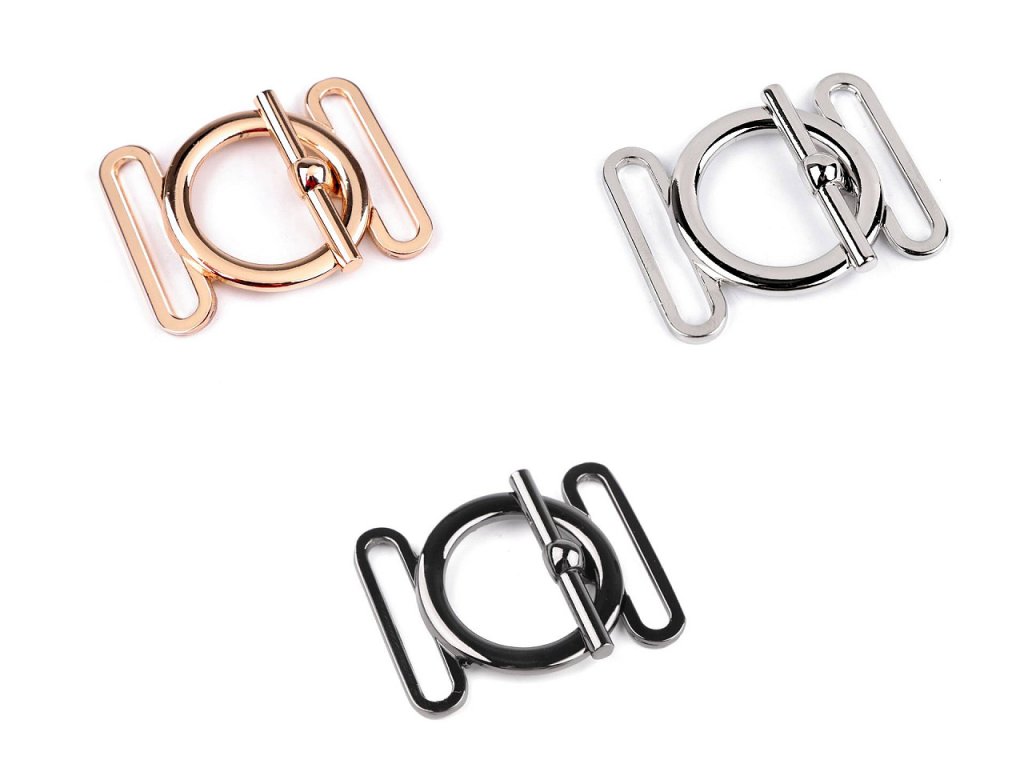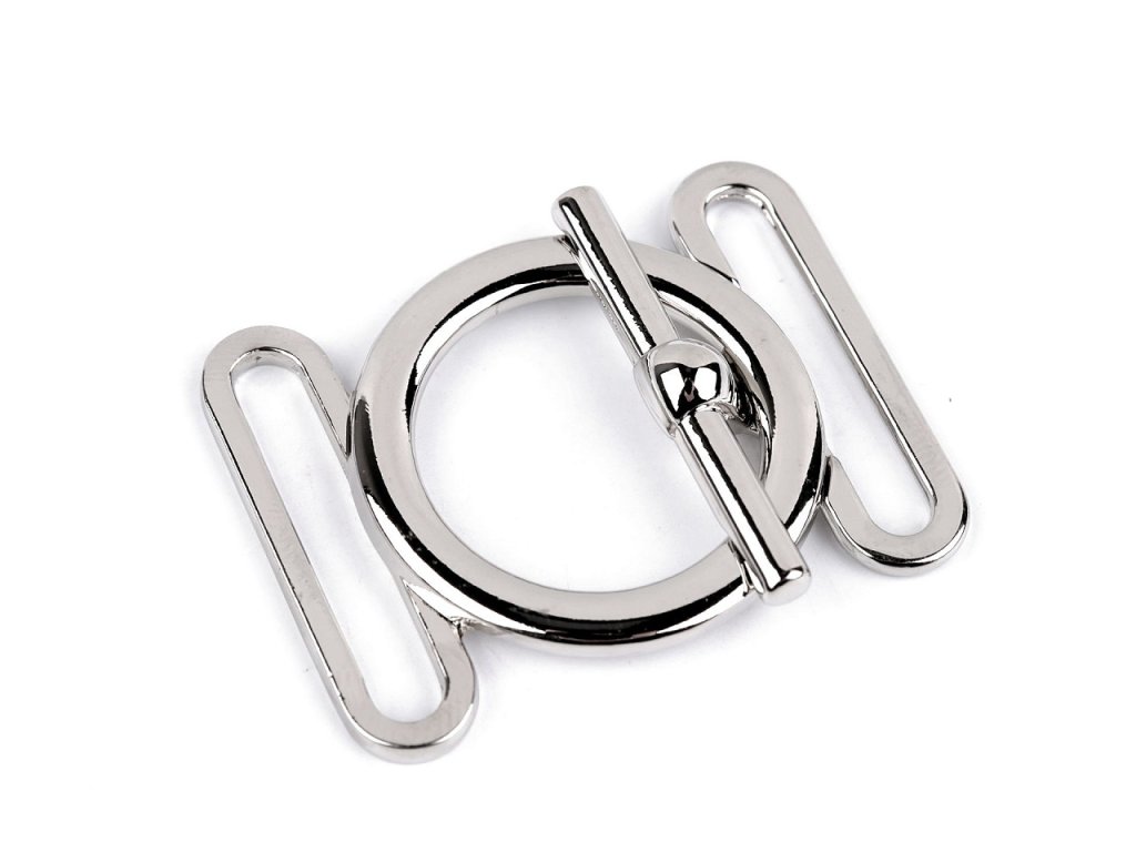 Americké zapínání je vyrobené z pratelného nemagnetického kovu. Zapnete jej vsunutím tyčinky do kruhu. Hodí se na zapínání k plavkám, na výrobu opasků, dá se využít jako elegantní zapínání lacláčů. Můžete jej našít na kardigany, vesty, kabátky, svetry, šaty apod.