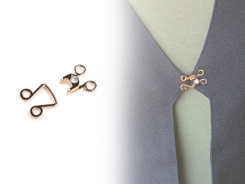Ozdobné zapínání s broušeným kamínkem se skládá ze dvou dílů, které do sebe zaháknete. Vynikne na halenkách, kardiganech, vestách, svetřících apod.