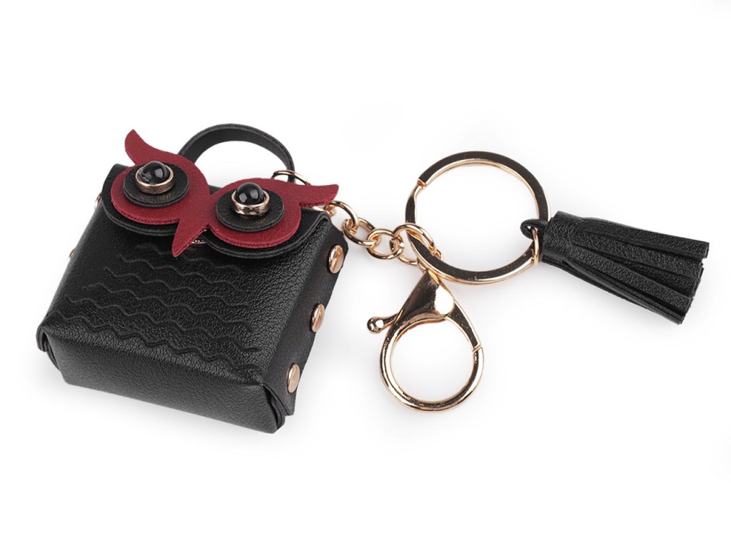 Přívěsek malé soví kabelky je nejen krásný, ale i velice praktický. Je jako opravdová malá kabelka. Je vyrobená z eko kůže, můžete si do ní schovat drobné mince, bonbon a podobné maličkosti na přežití. Klopa se zapíná na patent. Kabelka originálně dozdobí klíčenky, batohy, tašky apod.