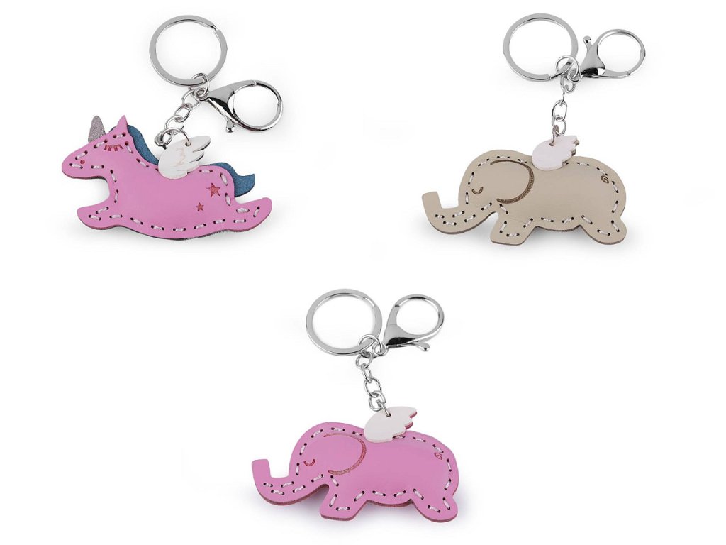 Přívěsek jednorožce nebo slona s křídlem je vyrobený z eko kůže, díky tomu má malou hmotnost. Je ozdobený štepováním, s oblibou se nosí na klíčích, batozích, taškách i kabelkách. Je zavěšený na řetízku, ke kterému je připojená otevírací karabina a plochý kroužek na klíče. Přivěsek je jednostranný, zadní strana je jen proštěpovaná.