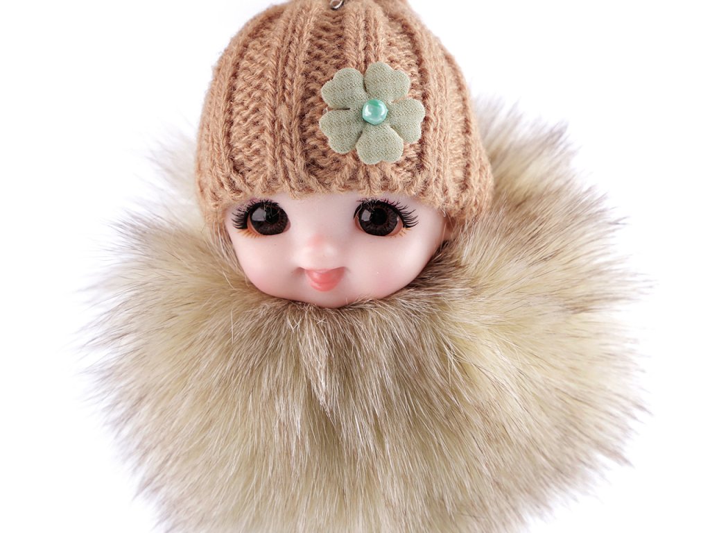 Přívěsek panenky s bambulí z pravé kožešiny se bude hodit jako doplněk na školní batoh, tašku či klíče. Panenka má hezky zpracované detaily. Díky kožešiny je přívěsek příjemně hebký, doslova vás bude nutit k neustálým dotekům.