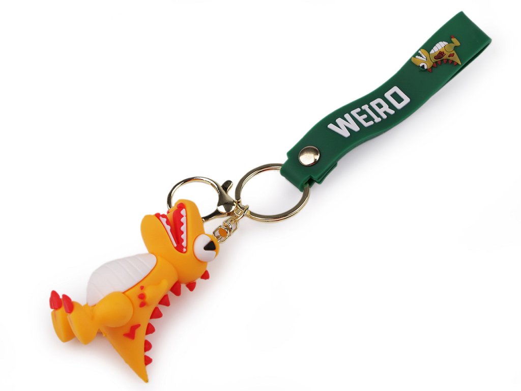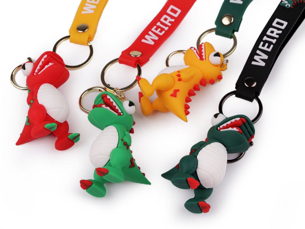 3D přívěsek s dinosaurem je díky barevného plastu velice roztomilý. S oblibou se nosí na klíčích, batozích, taškách i kabelkách. Na kroužku na klíče má připevněnou karabinu a silikonové poutko.