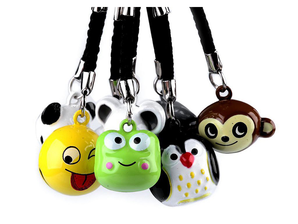 Přívěsek na klíče rolnička tučňák, panda, smajlík, myš, opice