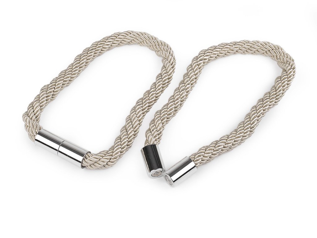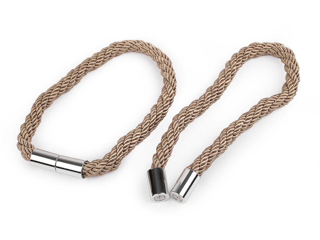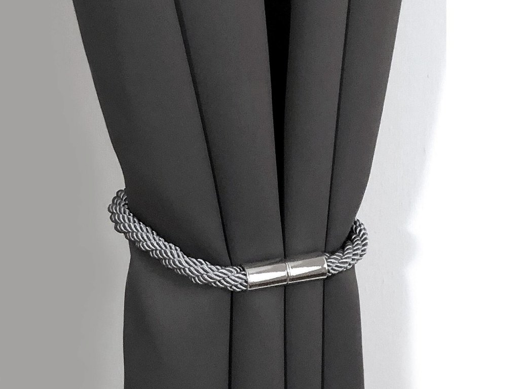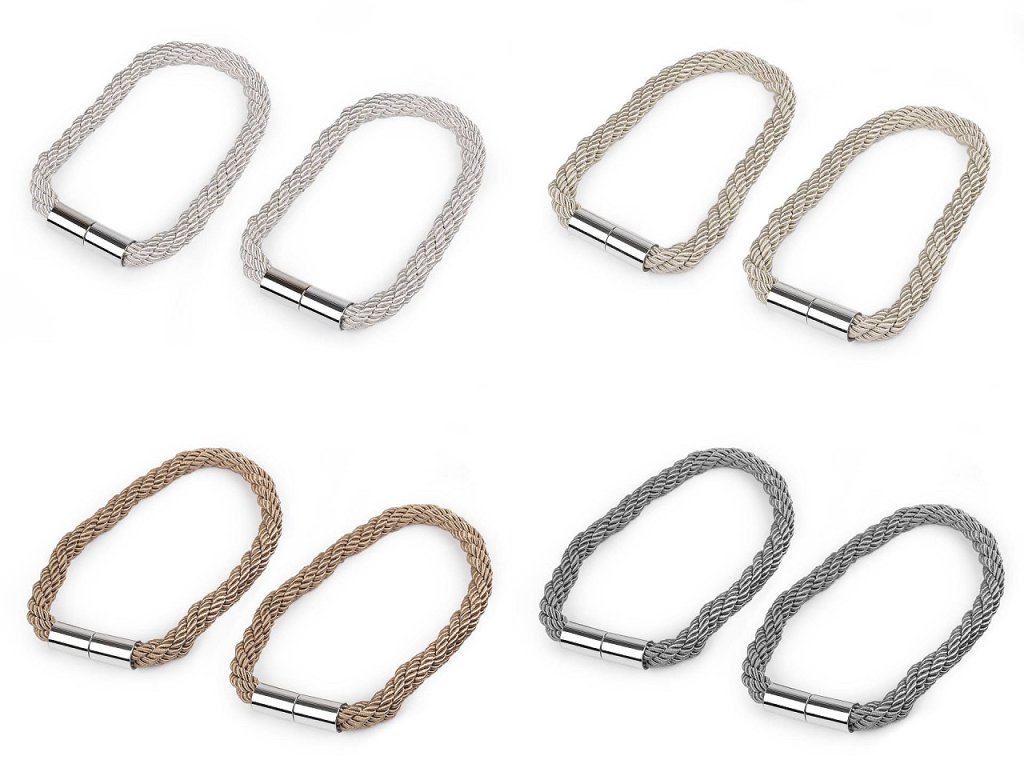 Dekorační úvaz ze splétaných šňůr díky magnetům dobře drží. Využijete ho na ozdobení a sepnutí závěsů či záclon.