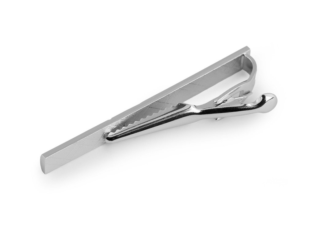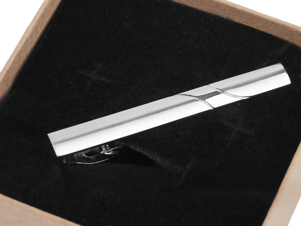 Kravatová spona je poslední tečkou dokonalého vzhledu pánského obleku. Je z kvalitního kovu, polomatná s leskem, má precizním provedení. Zapíná se pomocí klipsu, jenž dobře drží.
