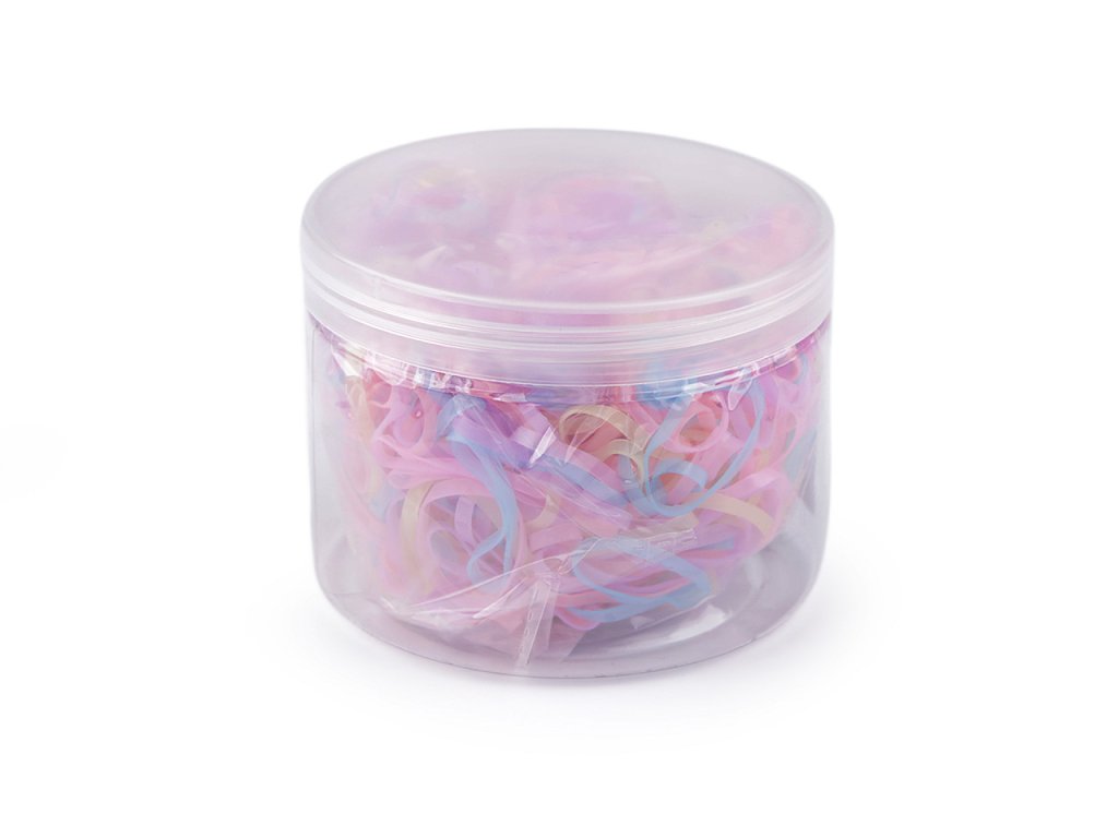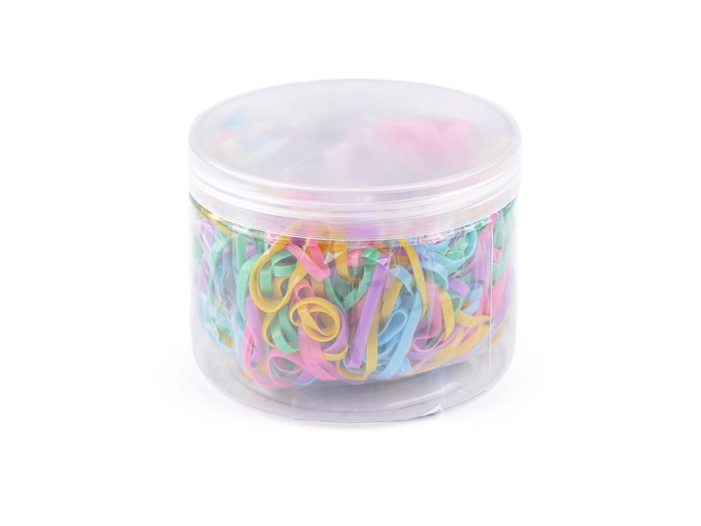 Sada malých silikonových gumiček se hodí vždycky. Ať už vytváříte složité účesy z velkého množství copánků nebo češete malé dívky s jemnými vlásky, malé gumičky oceníte. Jsou pružné, využijete je i běžně v domácnosti. Dodáváme je v plastové dóze se šroubovacím uzávěrem.