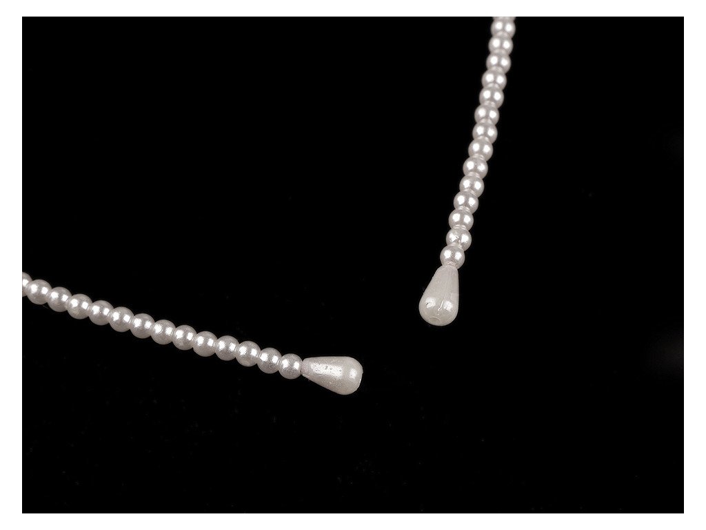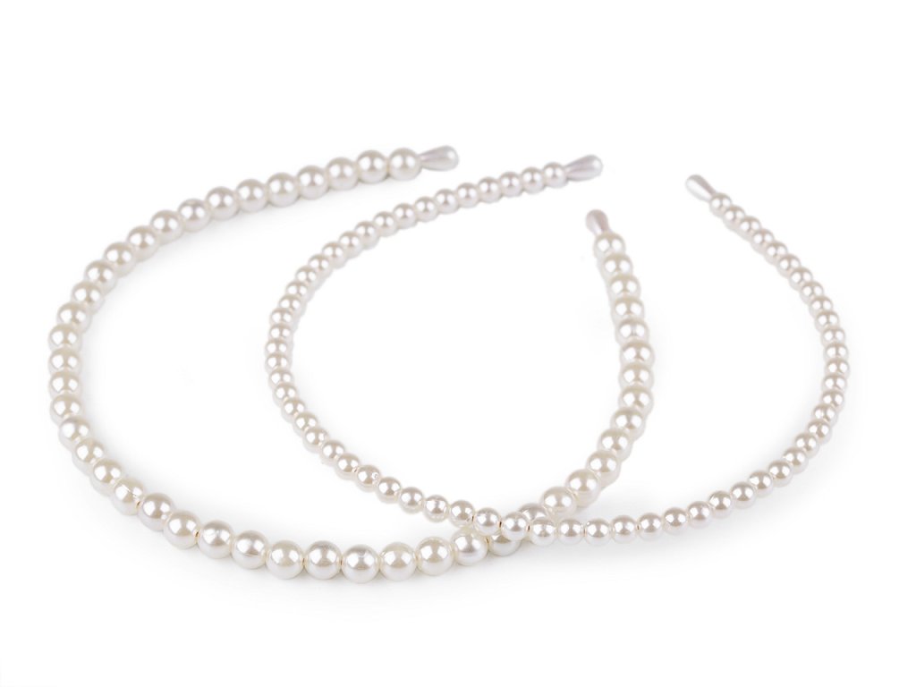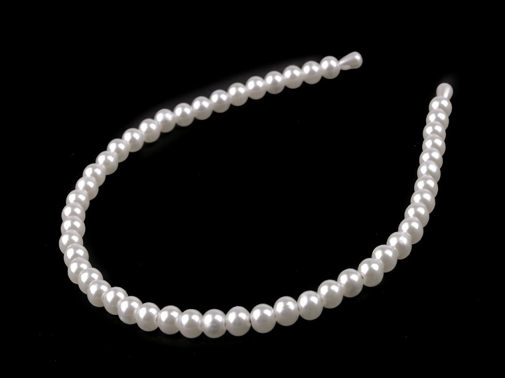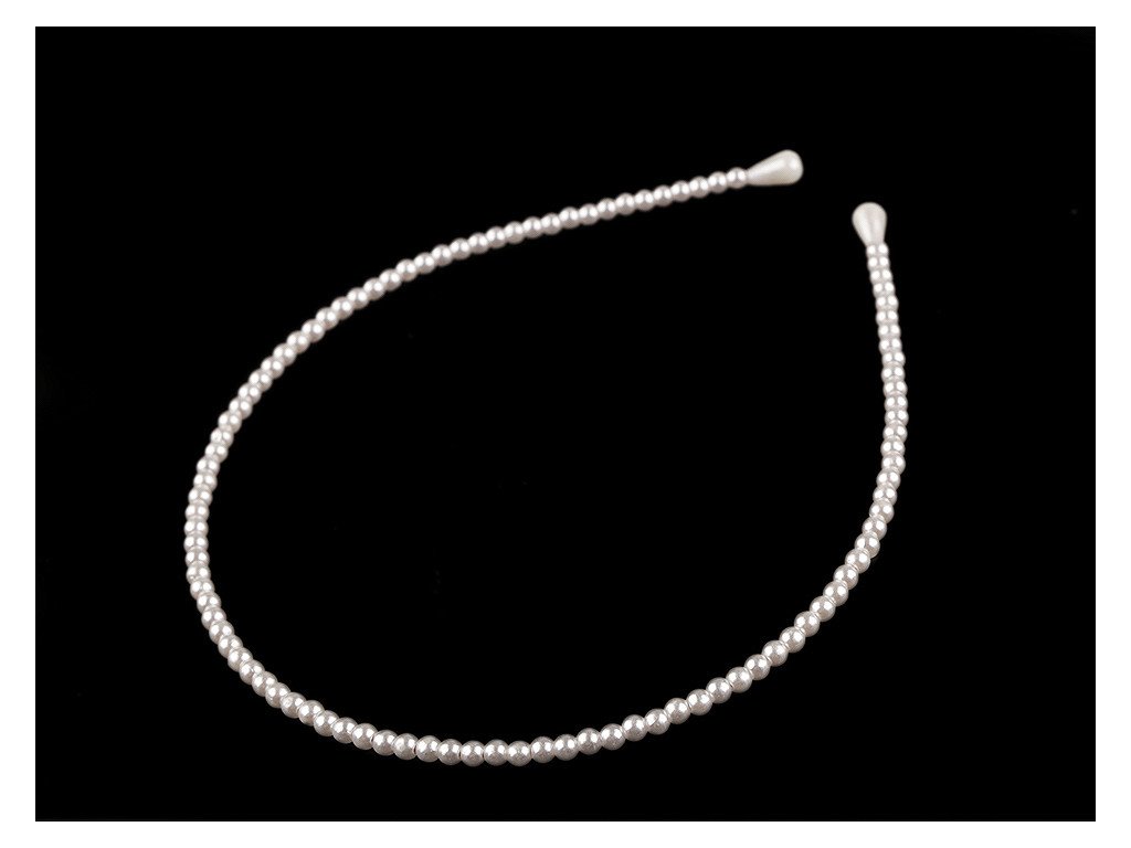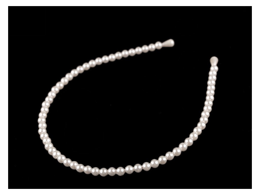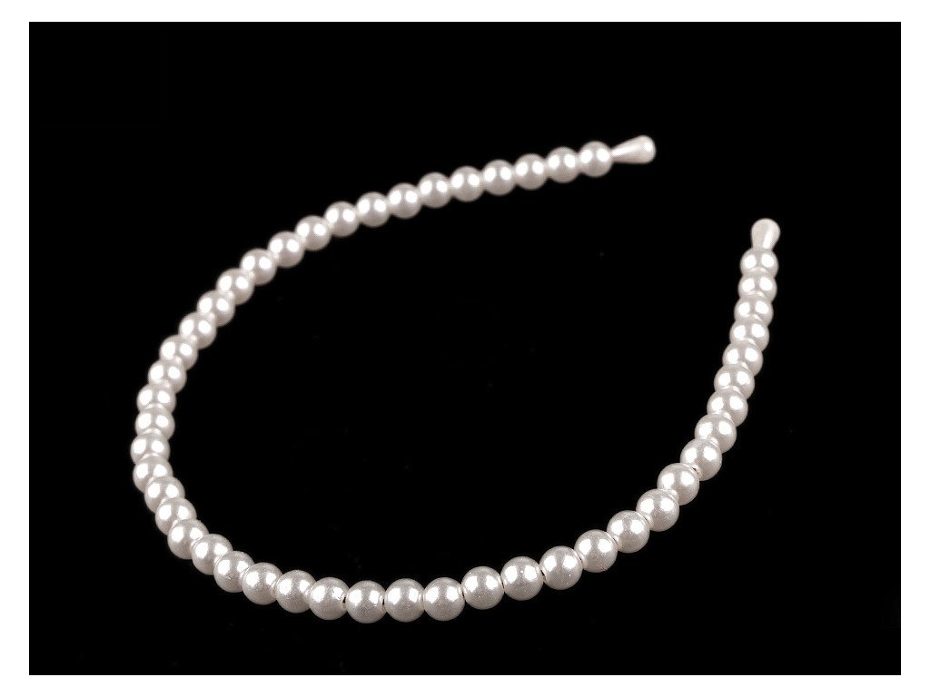 Působí jemným dojmem, váš společenský vzhled bude dokonalý. Skvěle zkrášlí družičky apod. Celá čelenka je z plastových voskových korálků s perlovým leskem.