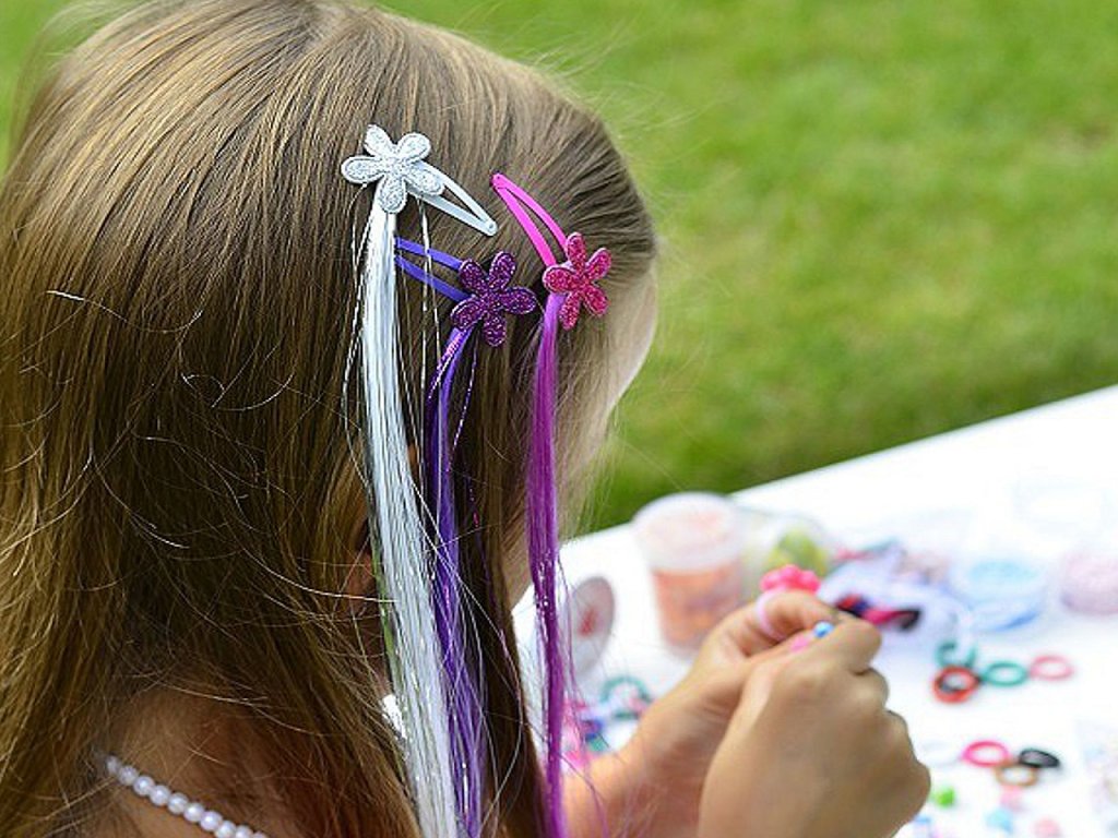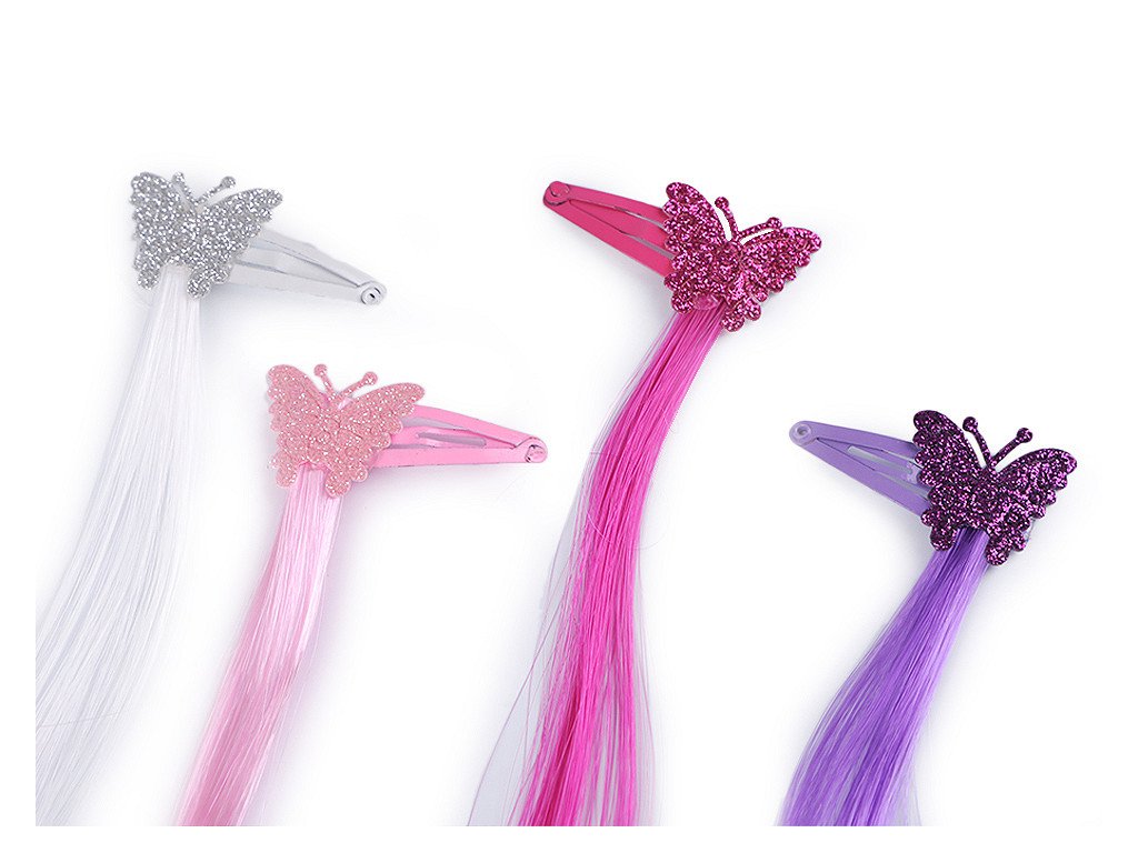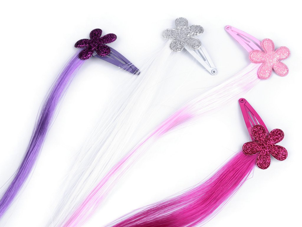 Sada barevných pramínků na pukačce potěší především malé holčičky. Jsou ozdobené textilními ozdobami s glitry, díky kterým se působivě třpytí. Pramínky skvěle oživí účes. Při dětské hře na princezny jsou neocenitelným doplňkem.