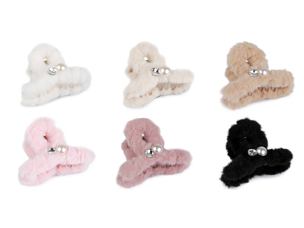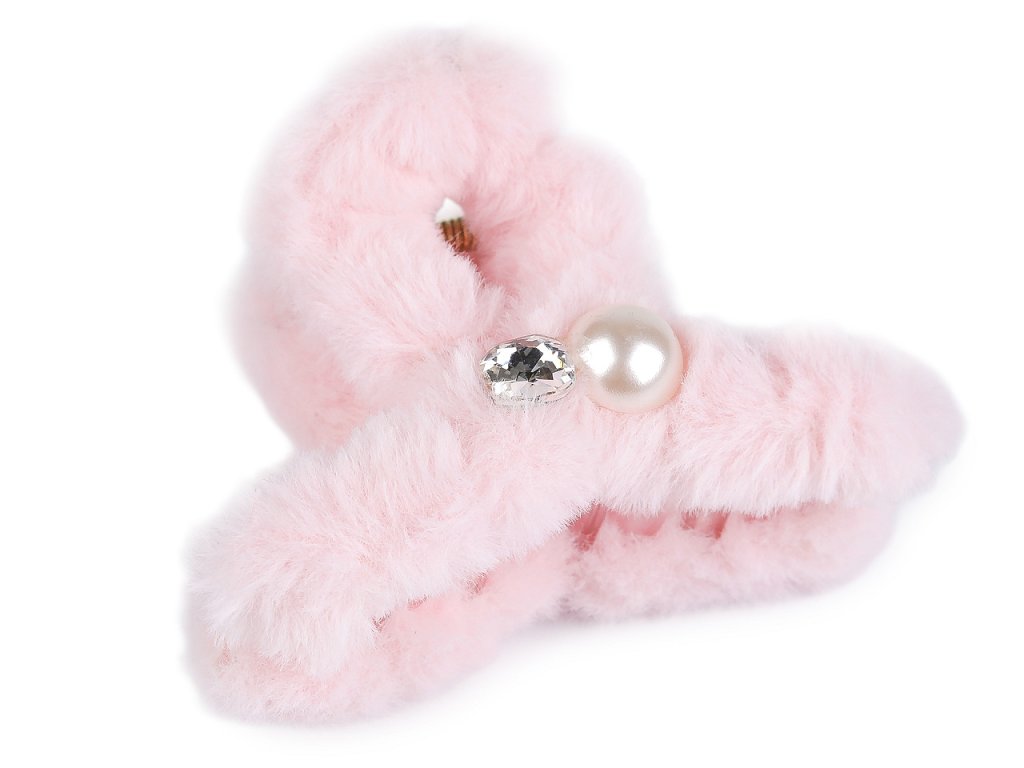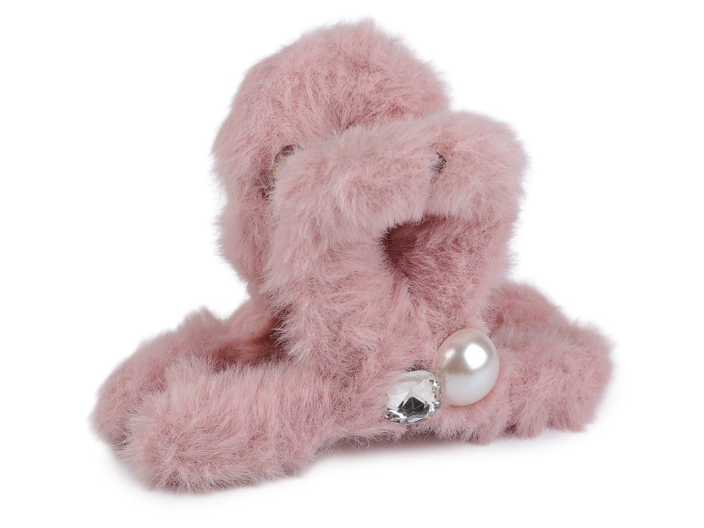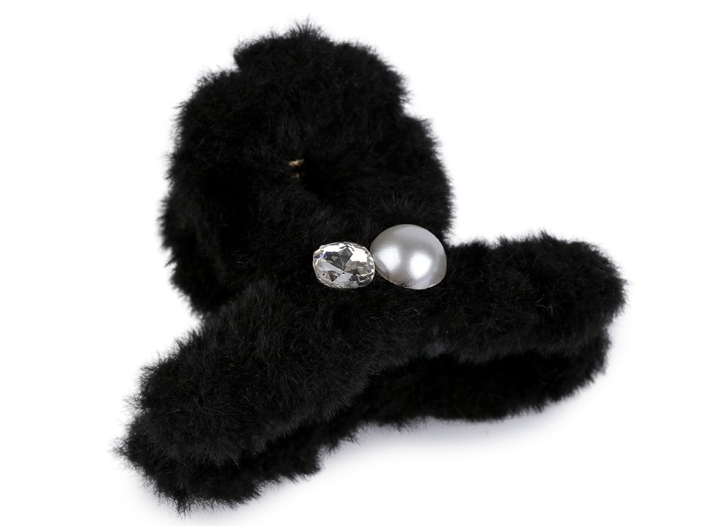Skřipec do vlasů kožešinový s perlou a broušeným kamenem