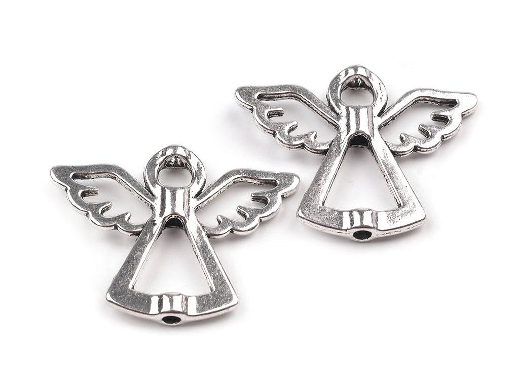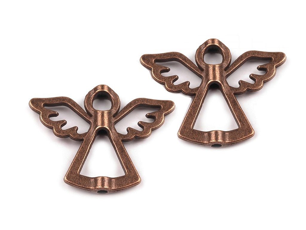 Kovový anděl se dá provléci shora až dolů ketlovací jehlou. Můžete ho využít jako ozdobu mnoha způsoby.