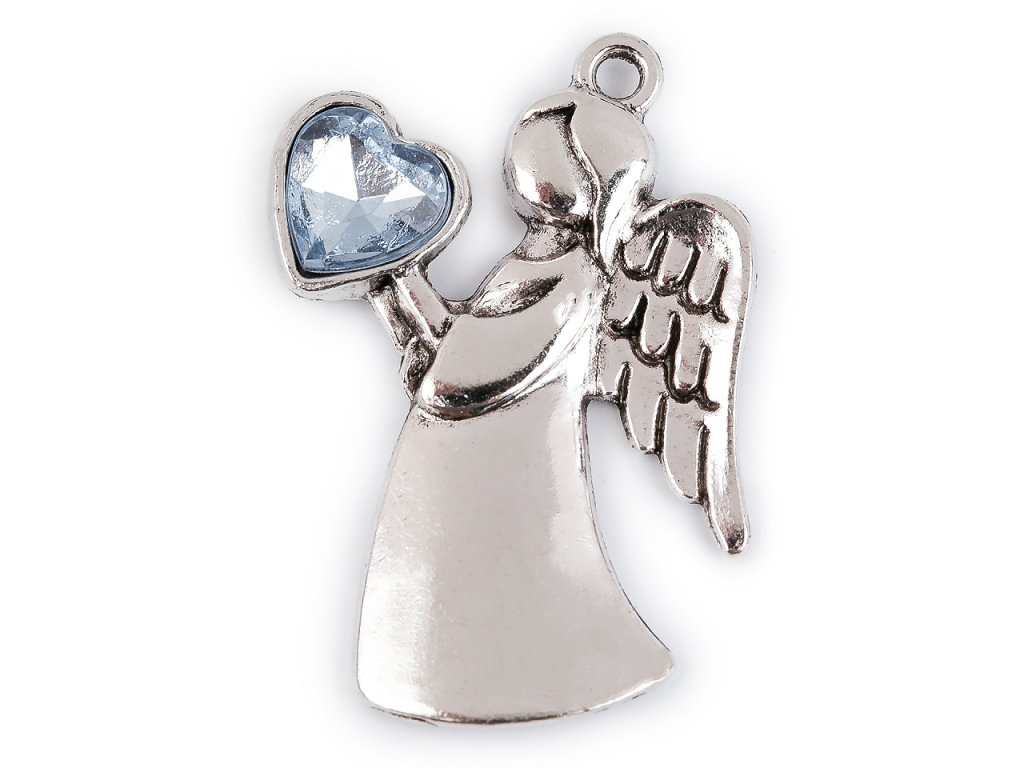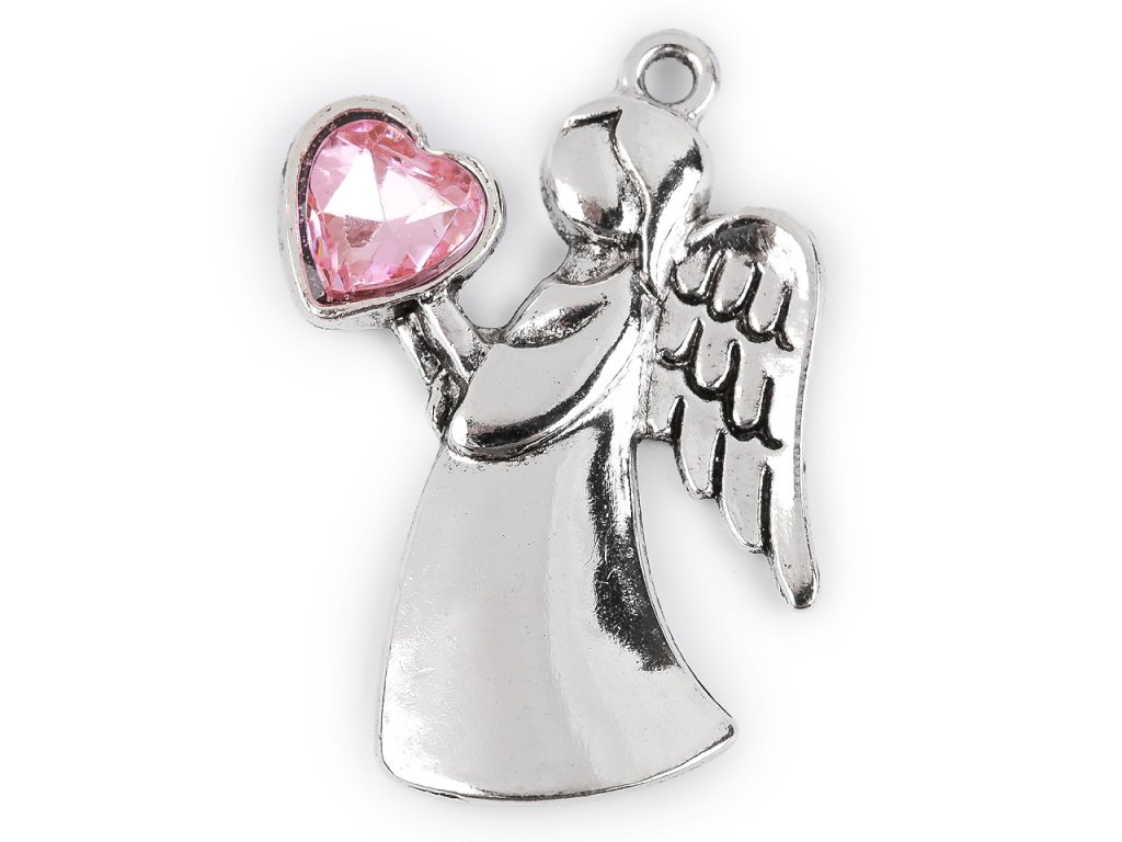 Přívěsek s andělem, držící kamínkové srdce.