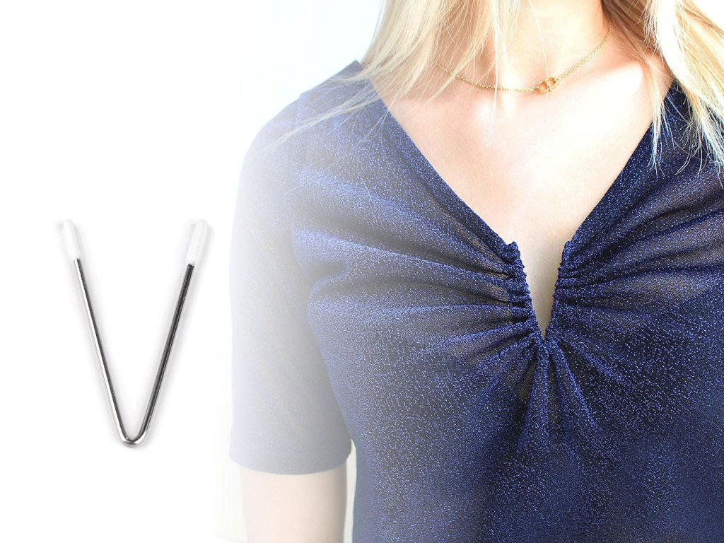 Kovová výztuž do výstřihu má tvar písmene V. Je rovná, není prohnutá. Skvěle vyztuží živůtky, korzety, podprsenky, plavky a šaty. Profil výztuže je kulatý, konce jsou zaoblené pro pohodlné nošení.