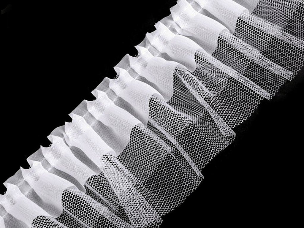Efektní 3vrstvý volánek je bohatě skládaný a pevně prošitý. Ozdobíte s ním sukně, šaty nebo halenky. Je vhodný k výrobě tutu sukní. Můžete ho našít také na karnevalové sukýnky, šatičky na panenky apod.