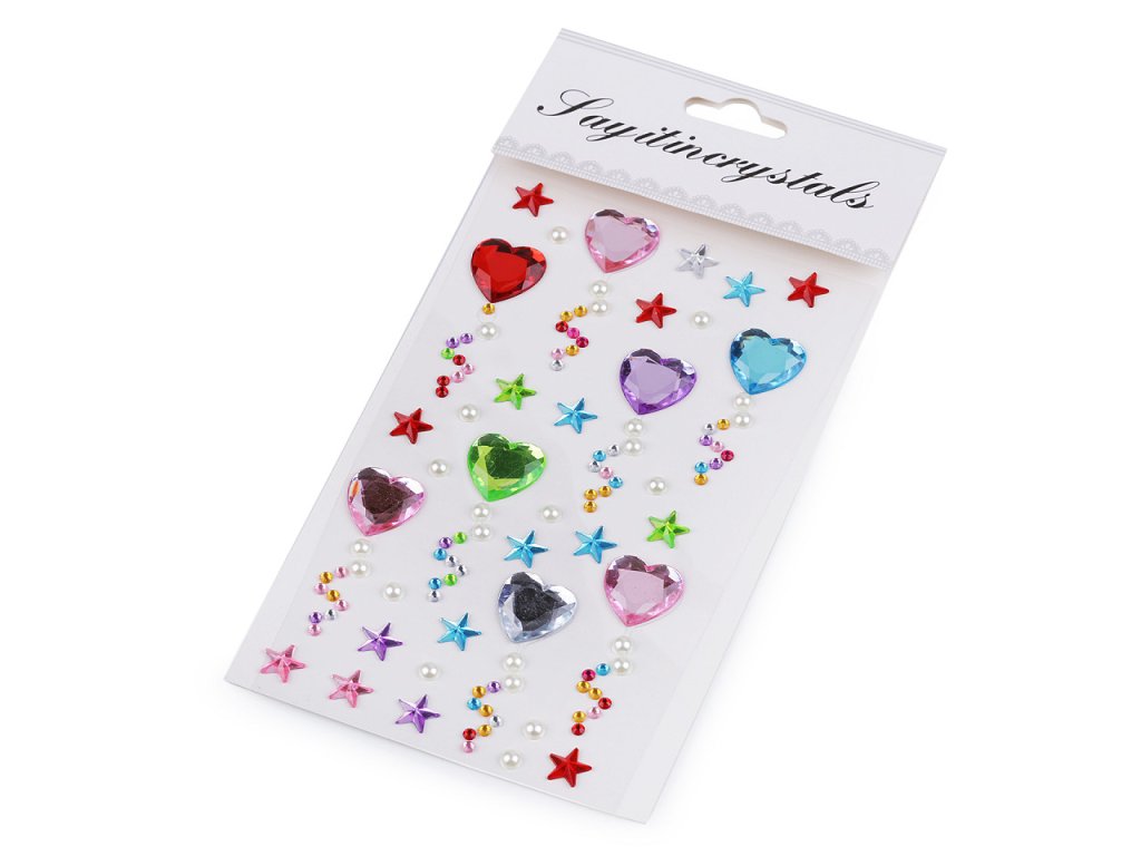 Sadu samolepicích ozdob z kamínků ocení nejen dívky, ale i všichni příznivci scrapbookingu. Kamínky jsou broušené, působivě se třpytí. Ozdoby jsou nalepené na jednom archu podkladové folie, ze které se pohodlně odlepí. Hodi se na ozdobení mobilu, tabletu, přáníčka, krabičky, zrcátka, květináče, deníku, fotoalba apod.