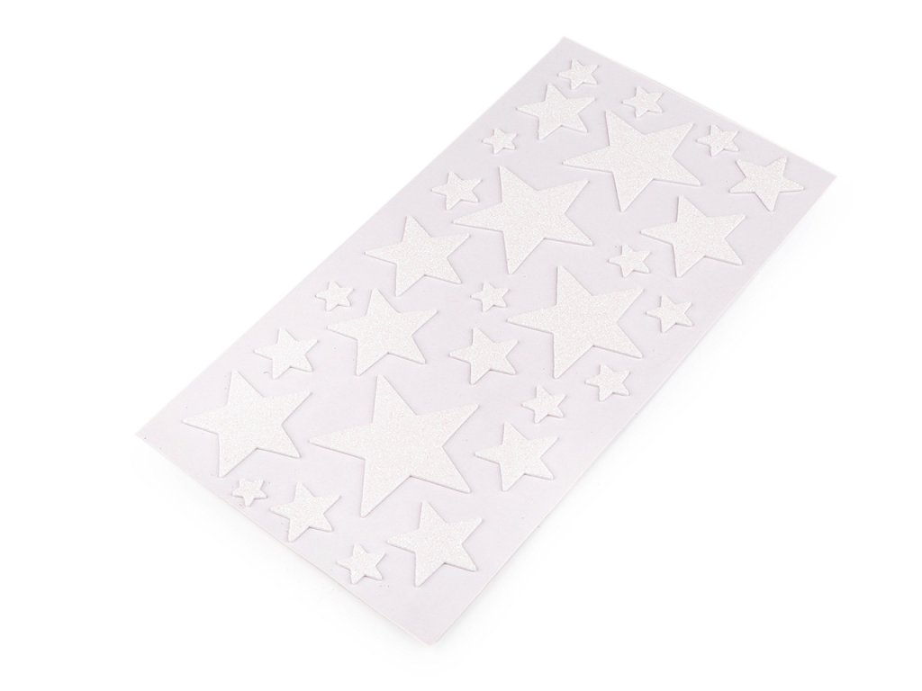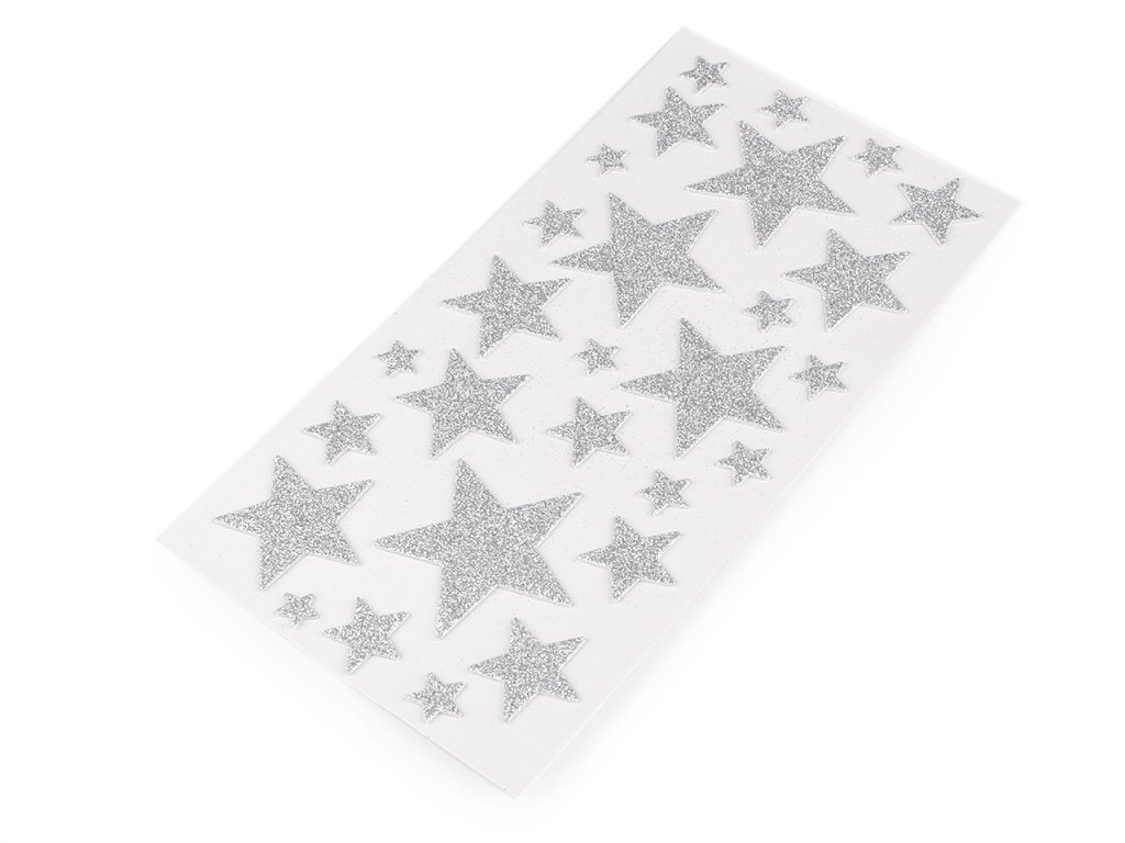 Dekorační hvězdy s glitry jsou vyrobené z pěnové gumy (moosgummi). Na spodní straně mají samolepicí vrstvu. Jsou vhodné k nalepení na zabalené dárky, pozvánky, krabičky, alba, deníky apod. Jsou nalepené na jednom archu podkladové folie, ze které se pohodlně odlepí.