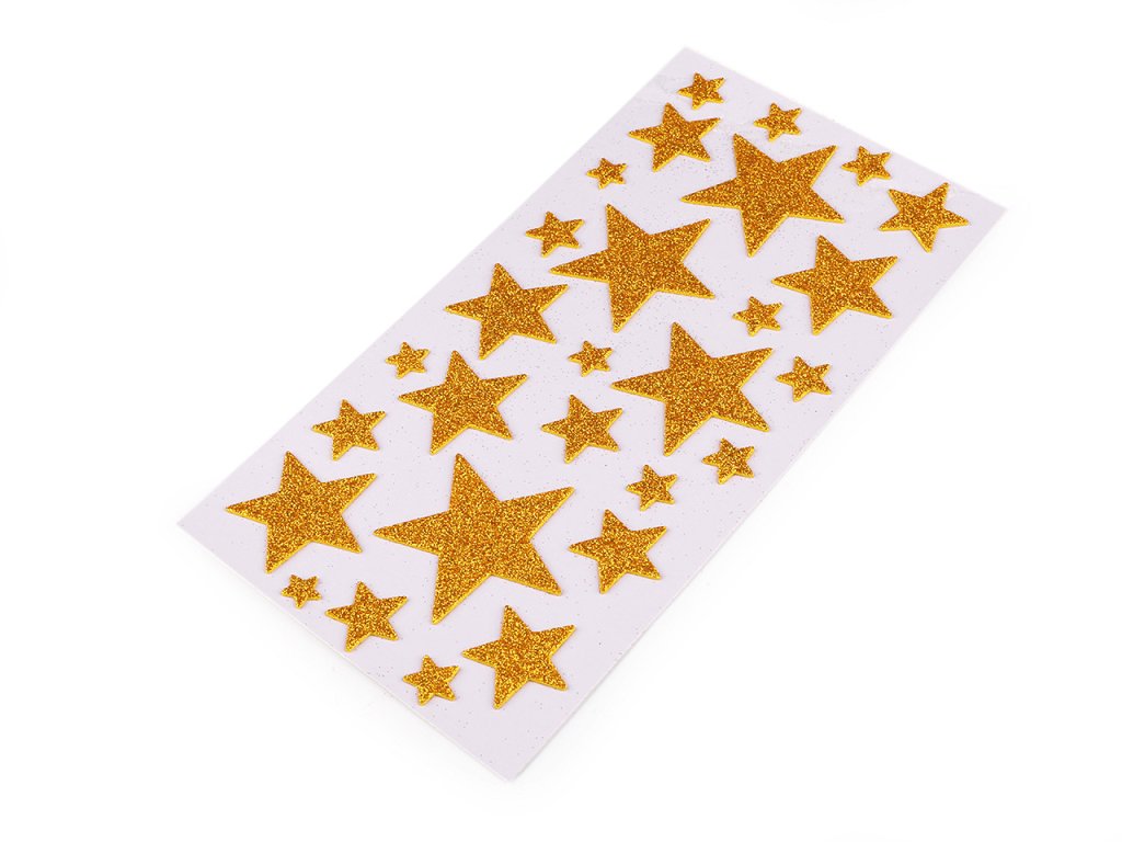 Samolepicí pěnová guma Moosgummi hvězdy s glitry - mix velikostí