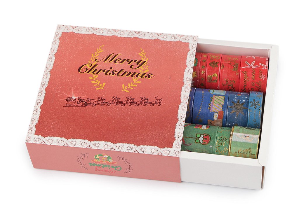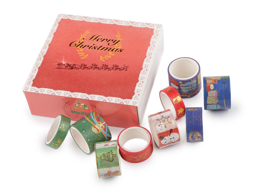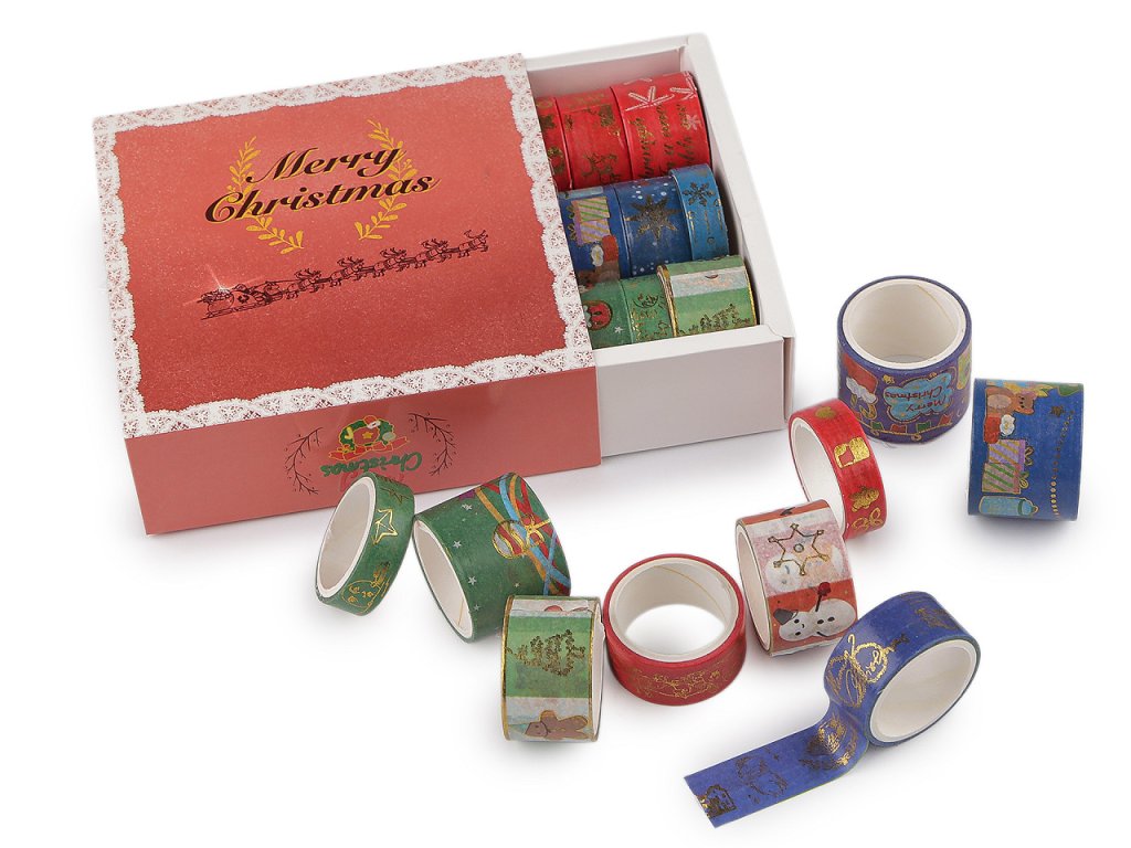 Sada washi vánočních lepicích pásek přinese sváteční kouzlo do každého detailu vaší vánoční výzdoby. Je ozdobená lesklými metalickými detaily, využijete ji na všech hladkých materiálech, jako je dřevo, plast, papír, sklo, atd. Můžete s ní ozdobit dárky a krabičky či je nalepit na přáníčka, alba, fotorámečky, do diáře apod.