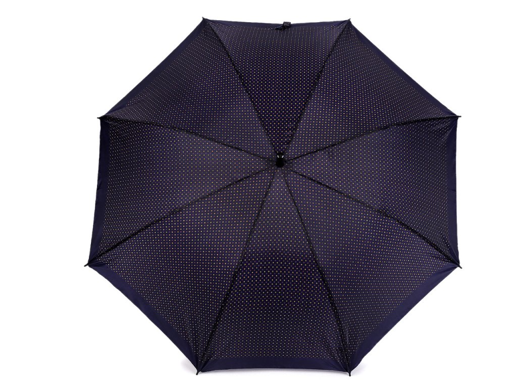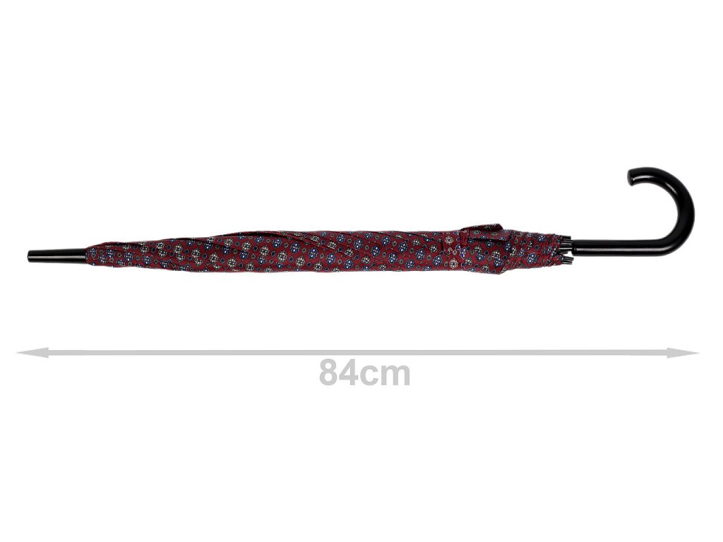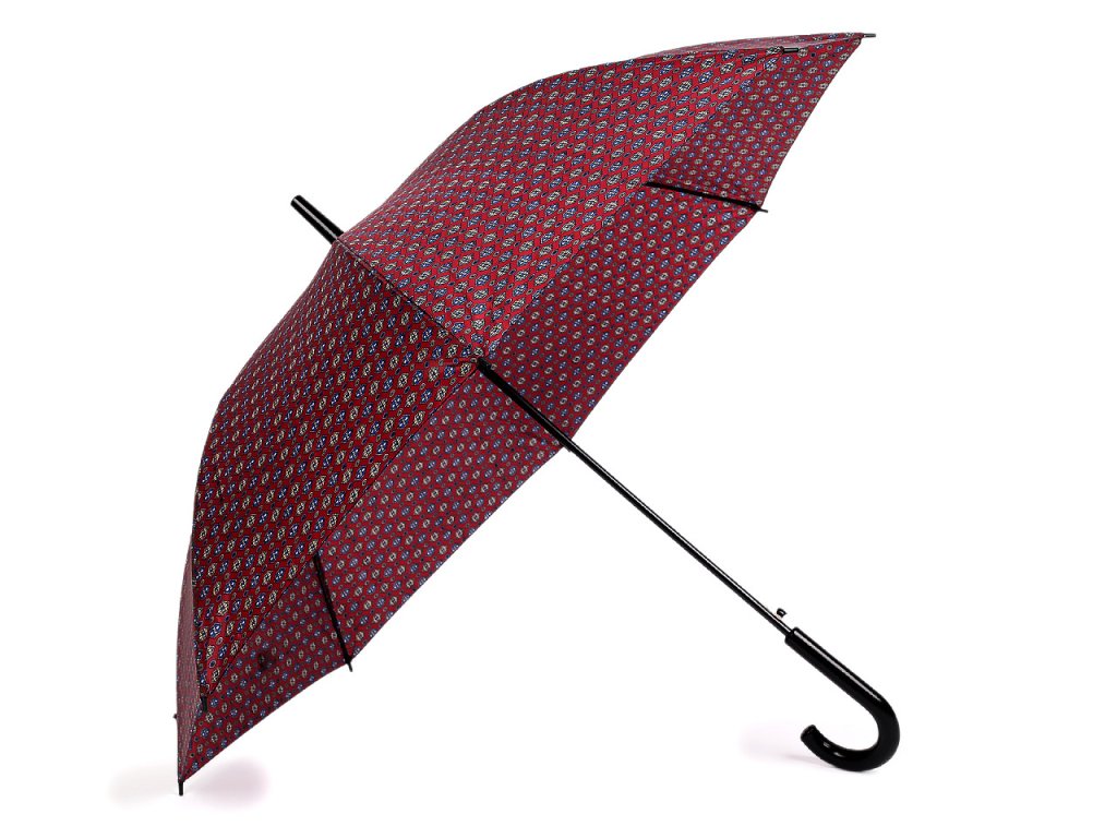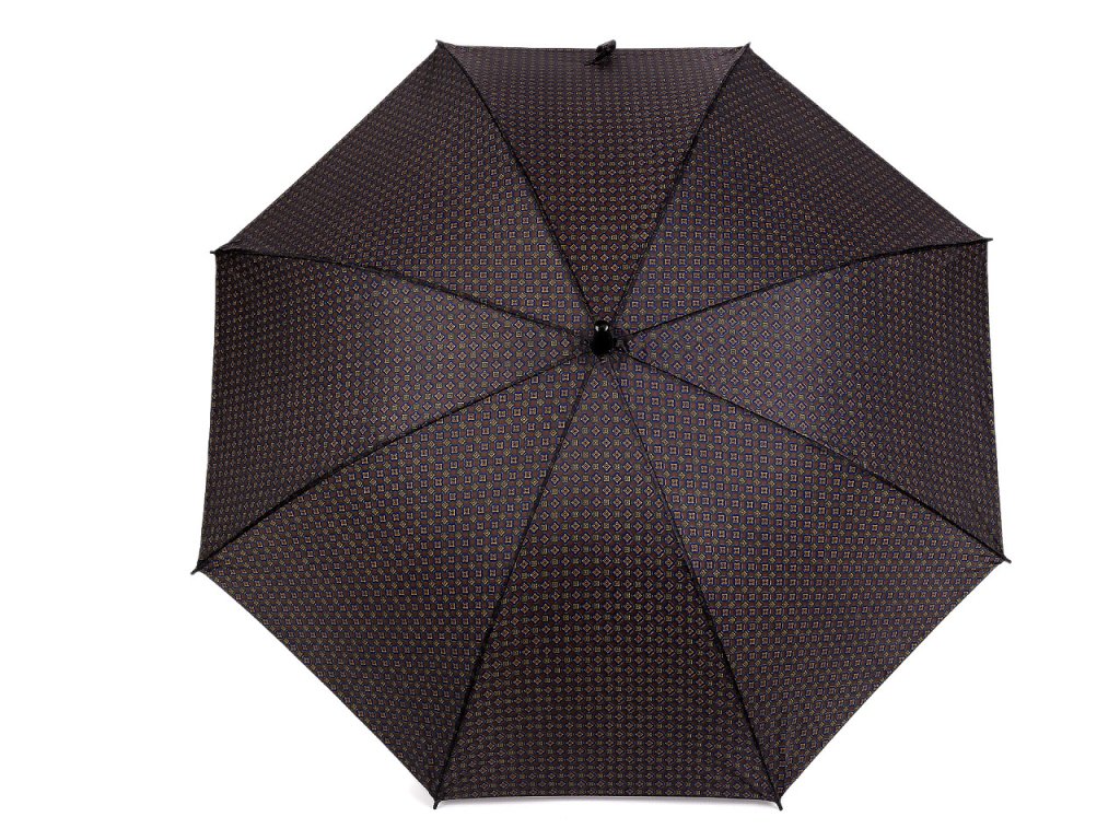 Pánský vystřelovací deštník má potah s jemným designem s různými motivy. Konstrukce deštníku je z kovového drátu a pružných lamel, tvoří osm polí. Díky nim je velice pevný, neohne se ani za největšího nečasu. Klasická tyč je zakončená pevnou rukojetí.