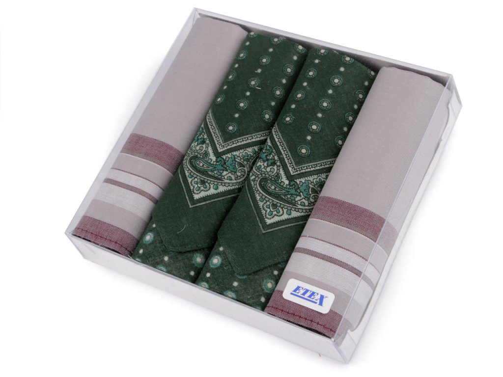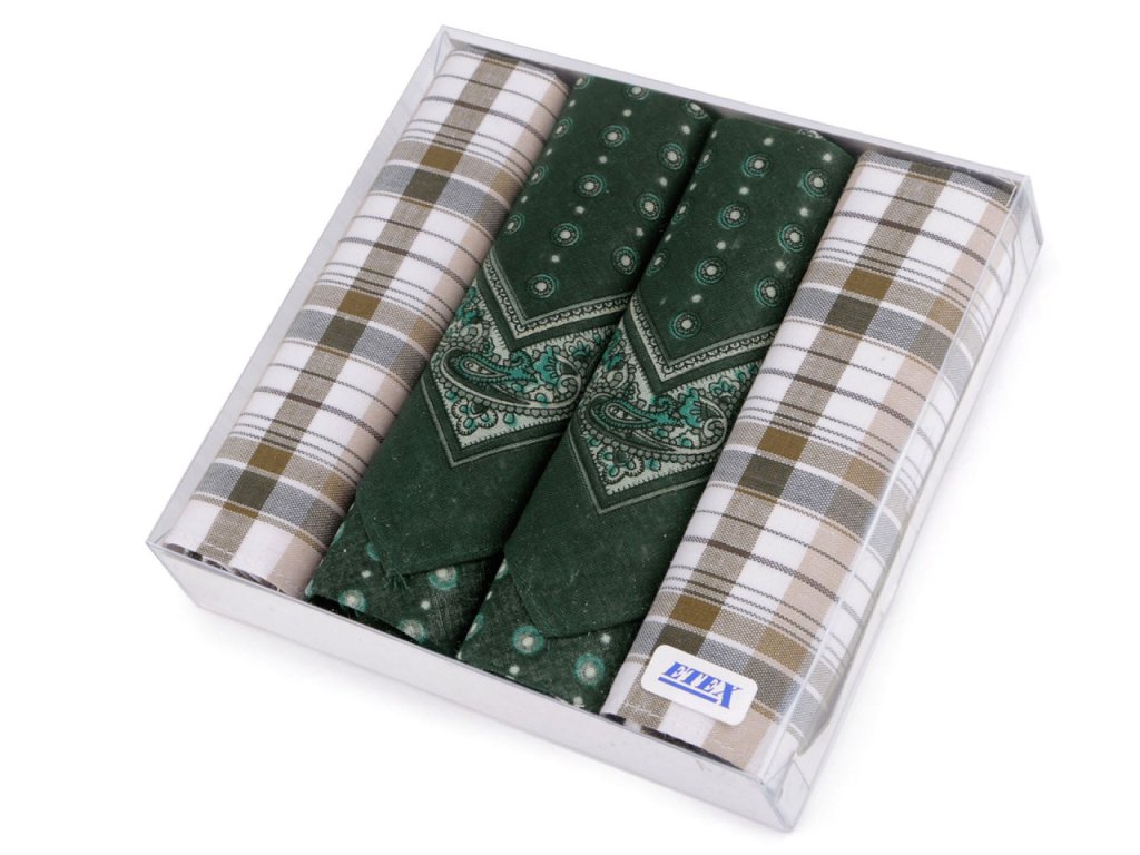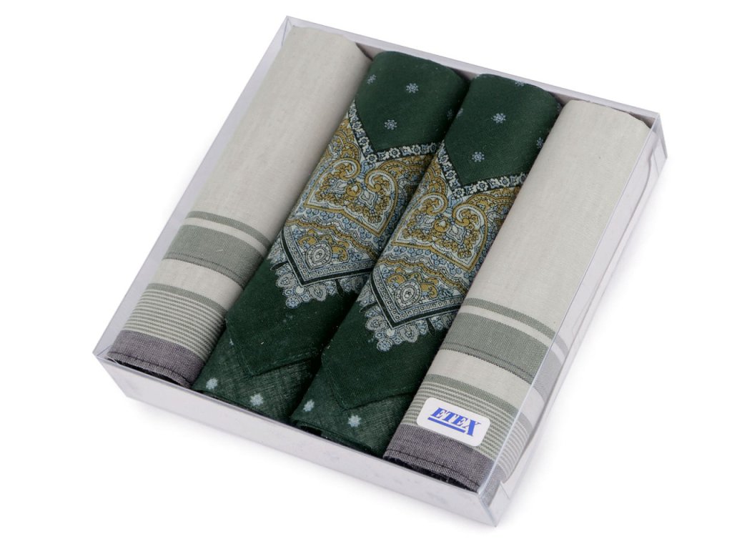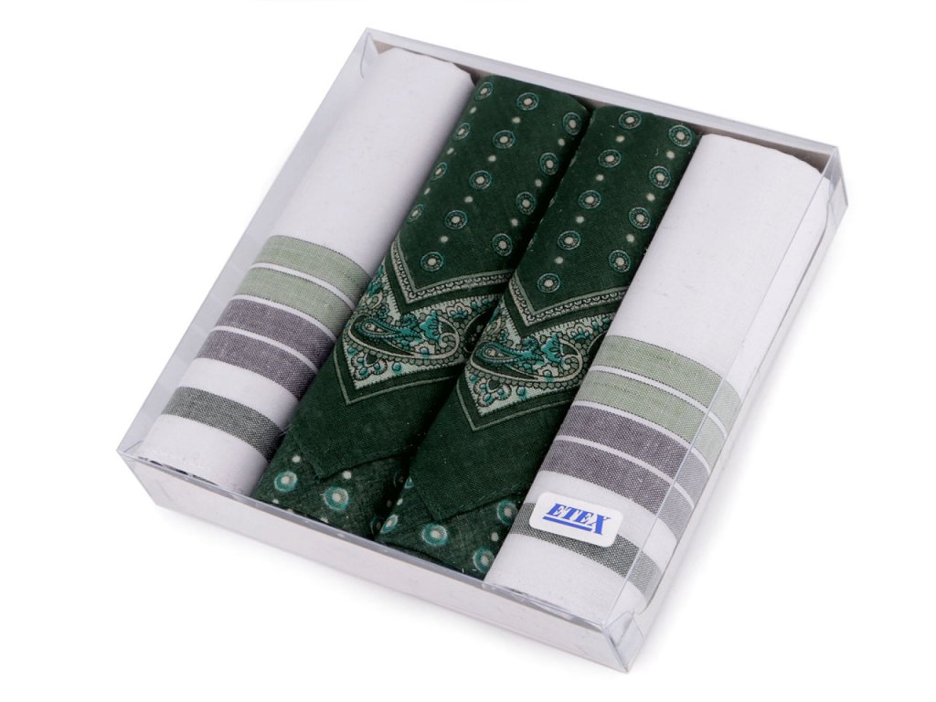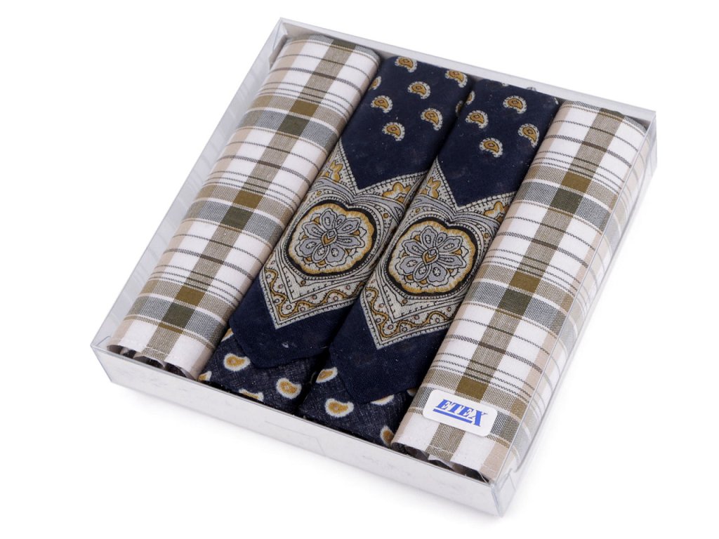Sada velkých elegantních kapesníků v krabičce s transparentním víkem je vhodná pro všechny muže gentlemany. Mohou vám posloužit jako hodnotný dárek. Jsou ideální volbou pro každodenní použití i speciální události. Jsou velice kvalitní, oceníte jejich jemnost i dlouhou životnost.