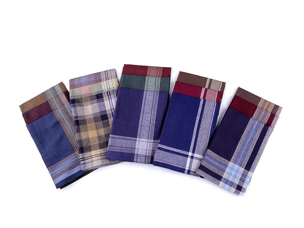 Pánské kapesníky různých dezénů o rozměrech 37 x 38 cm jsou baleny po 6 kusech, vždy 2 x 3 barvy v balení. Nabízíme vám sady v náhodném mixu, jelikož v zásobách dostáváme sady s rozdílnými dezény.Mix náhodných variant obsahuje druhy kapesníků, které máme právě skladem.
