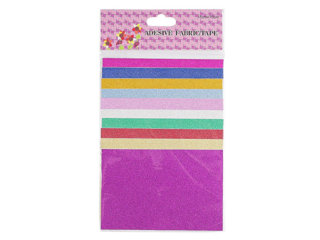 V jedné sadě je deset kusů různě barevných fólií o rozměru 10 x 15 cm.