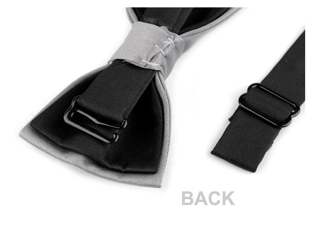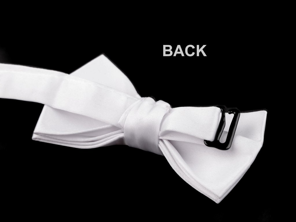 Dá se přizpůsobit různým šířkám krku. Nejdelší délka motýlka okolo krku je 49 cm. Tato délka se dá zkrátit na potřebnou velikost, aby motýlek přesně seděl. Zapínání je kovové, pásek je ze saténu.