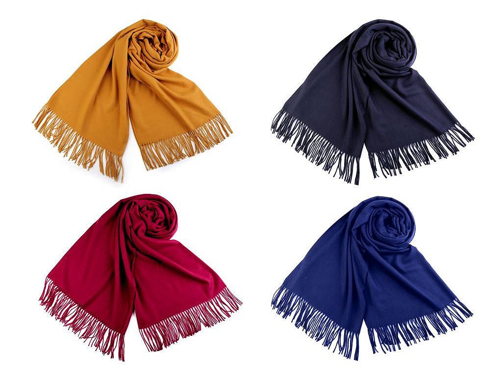 Jednobarevná šála skvěle doplní váš jednoduchý outfit. Materiál je pevný a výjimečně příjemný na dotek. Šála je na koncích zakončená střapečky dlouhými 9 cm.