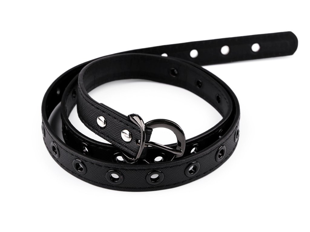 Dámský pásek s oky po celé délce se řadí k nadčasovým modelům. Mohou jej nosit i dívky, protože obvod pásku si lehce přizpůsobí svému pasu. Díky jednoduchému designu se dá dobře kombinovat se širokou škálou oděvů. Má klasickou kovovou sponu na zapnutí a štepování po obvodu.