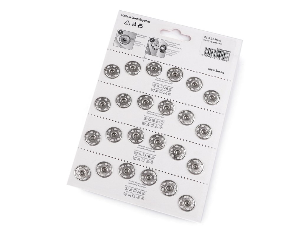 Knoflík se používá k zapínání různých částí oděvů. Průměr pérové části je 15,9mm. Průměr kuličky je 15mm. Na jedné kartě je 6 ks knoflíků.Jedná se o přišívací knoflíky