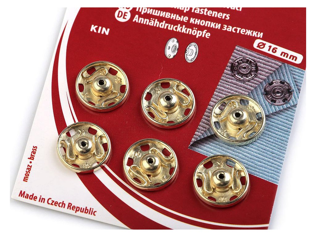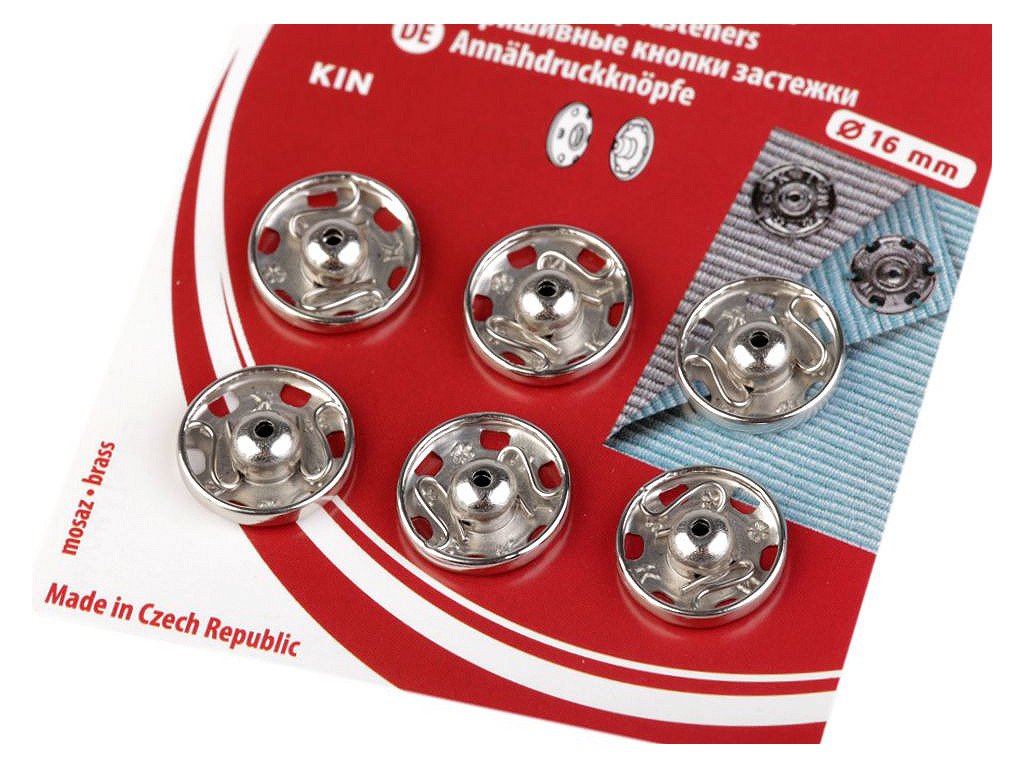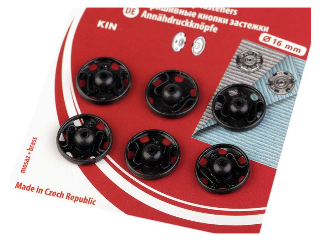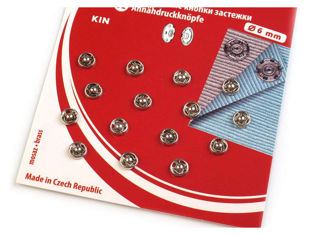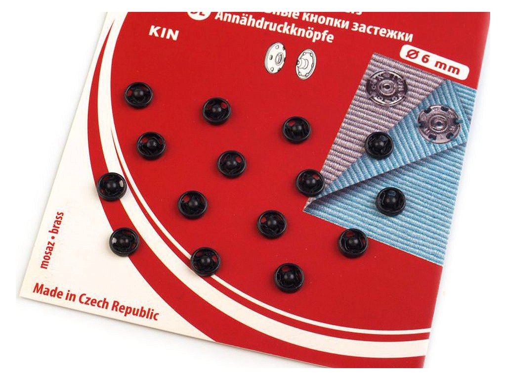 Velikost 6 má průměr: díl pérová část 15,9 mm, díl kulička 15 mm. Na kartě je 6 knoflíků.