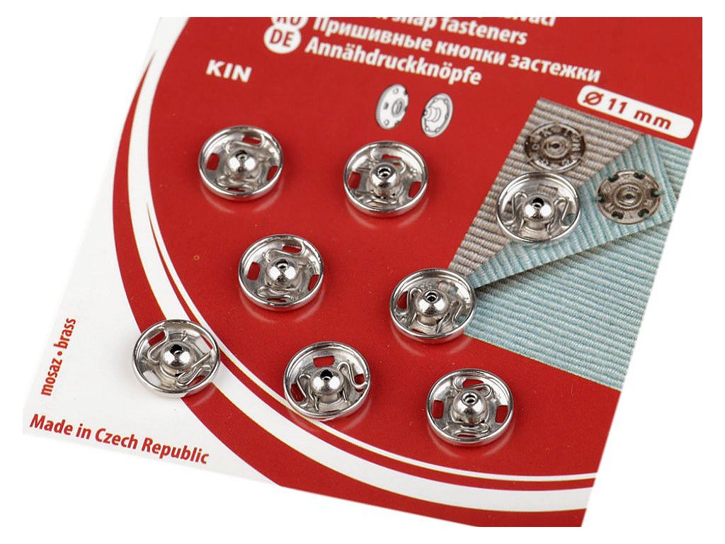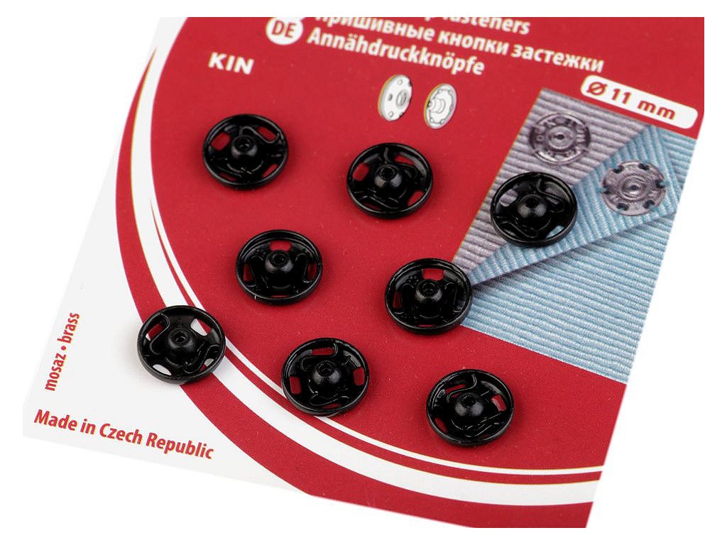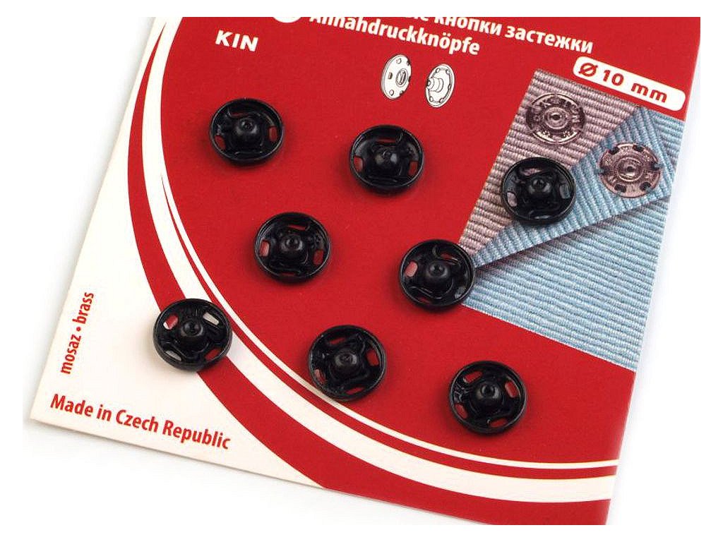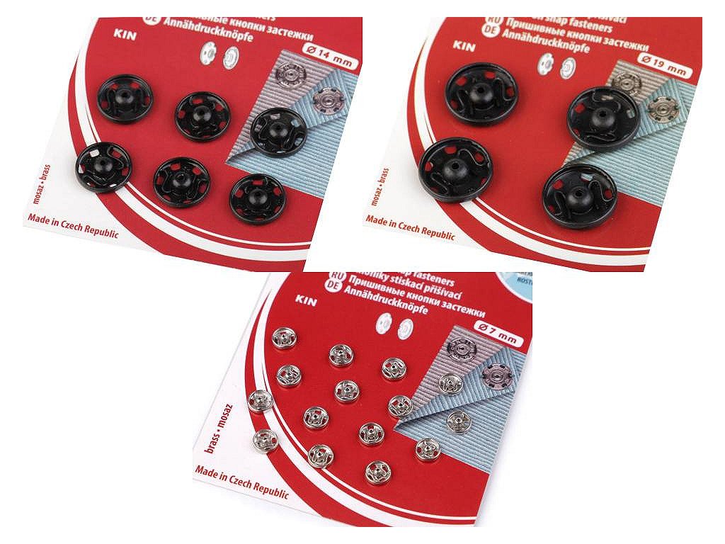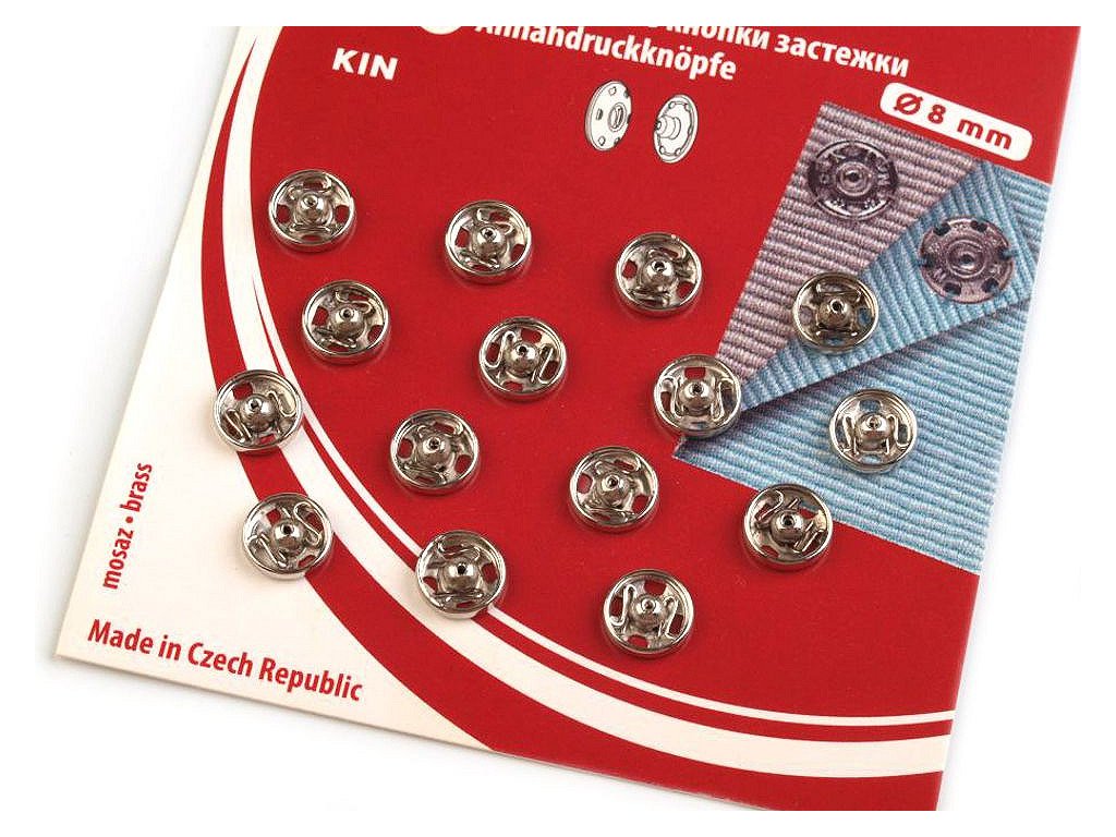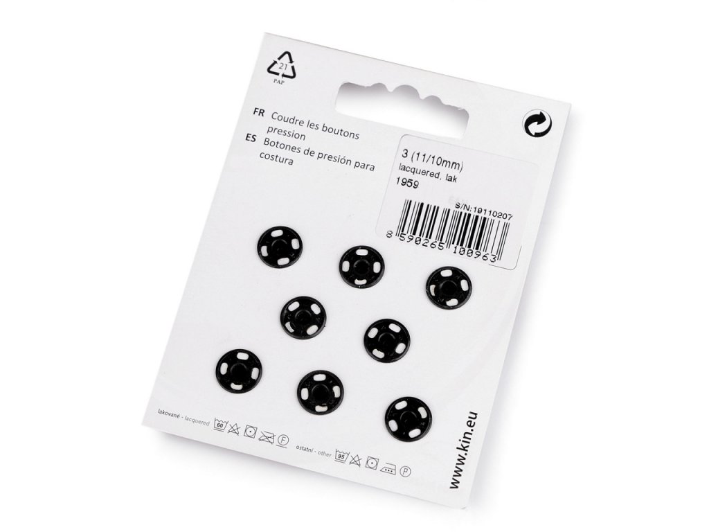 Velikost 3 má průměr: díl pérová část 11 mm, díl kulička 10 mm. Na kartě je 8 knoflíků.