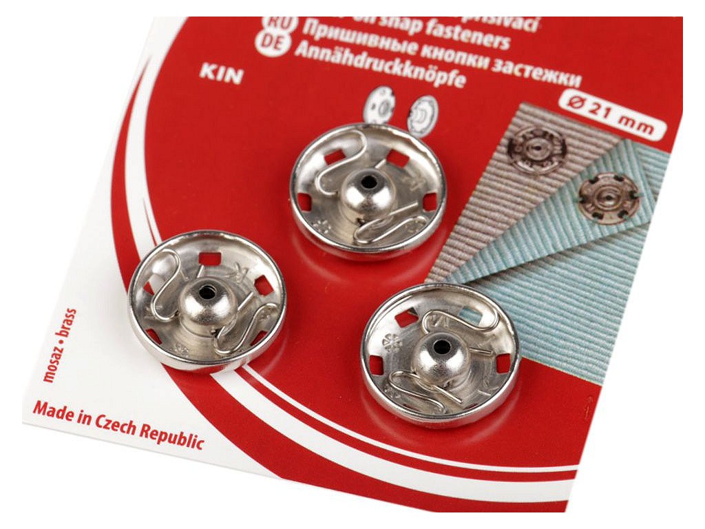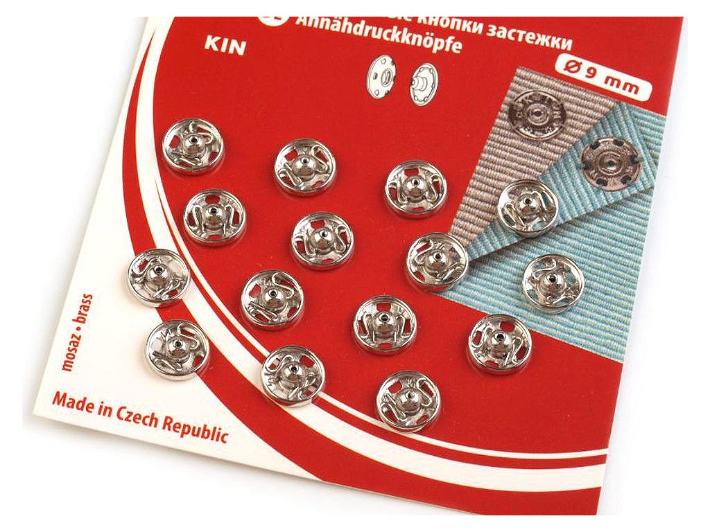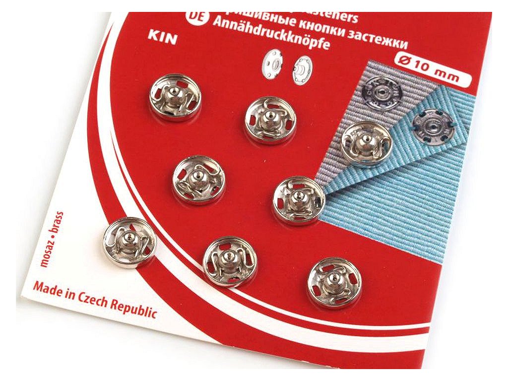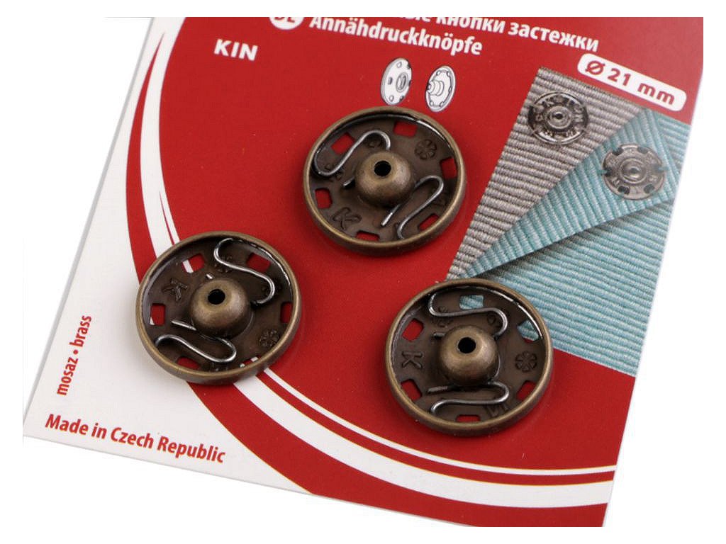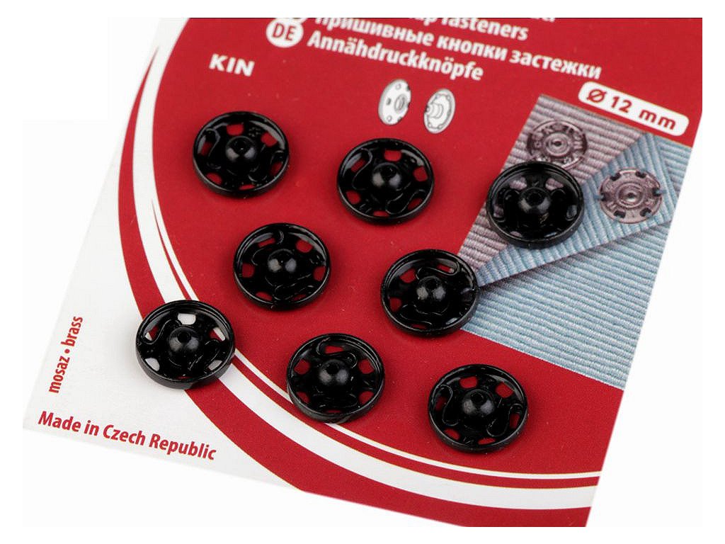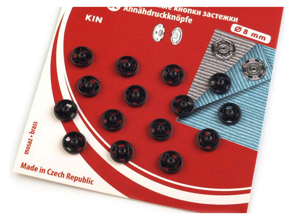 Velikost 3 má průměr: díl pérová část 11 mm, díl kulička 10 mm. Na kartě je 8 knoflíků.