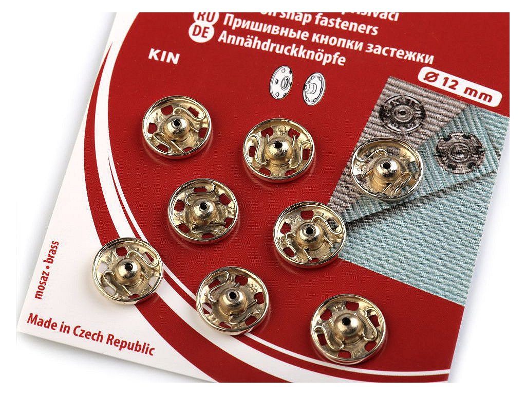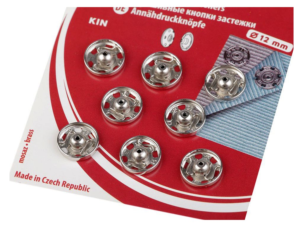 Velikost 4 má průměr: díl pérová část 12,4 mm, díl kulička 11,5 mm. Na kartě je 8 knoflíků.