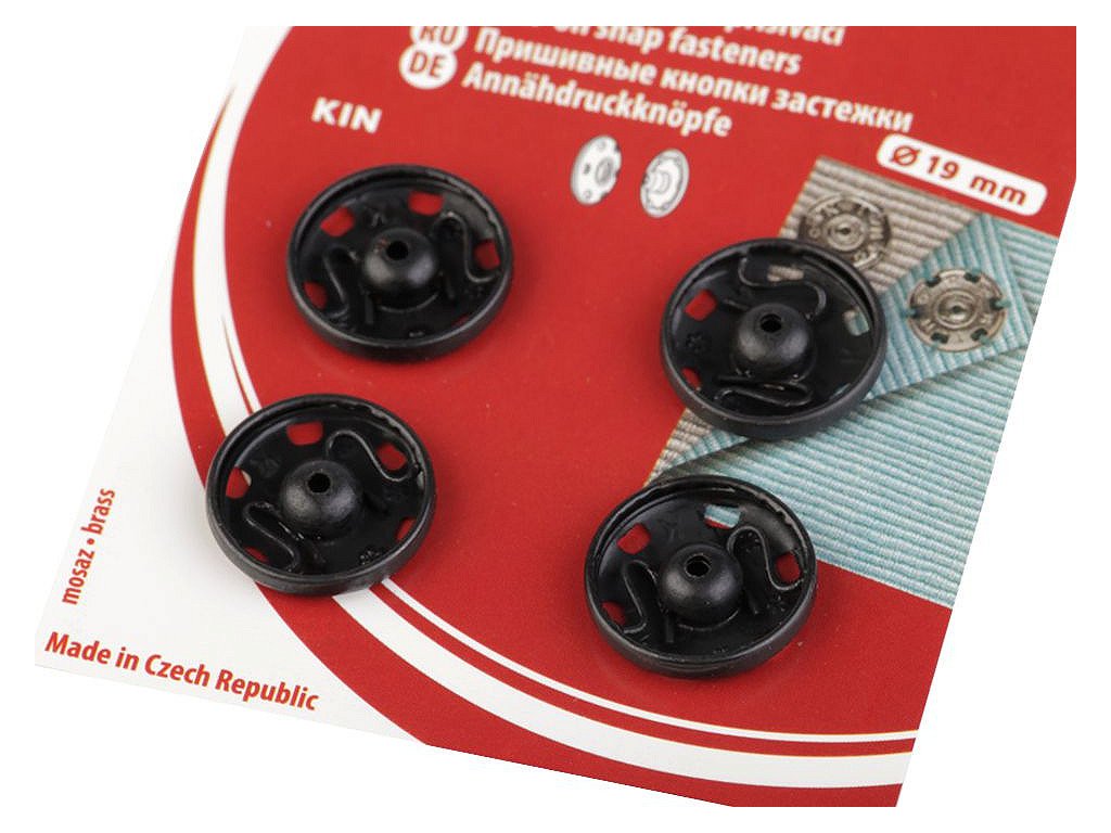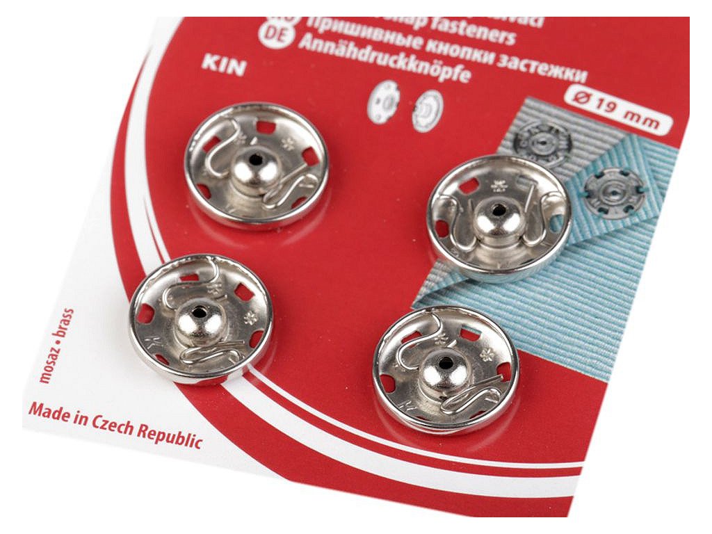 Velikost 7 má průměr: díl pérová část 18,9 mm, díl kulička 18 mm. Na kartě jsou 4 knoflíky.