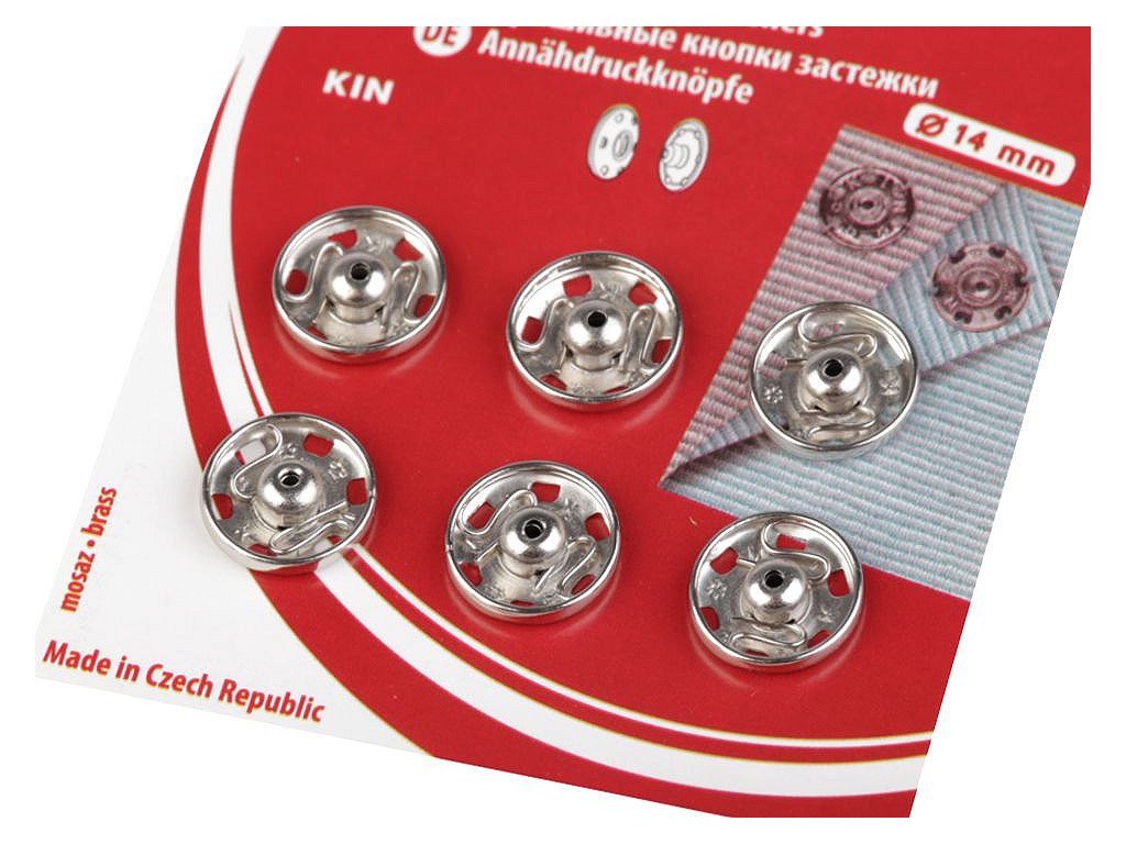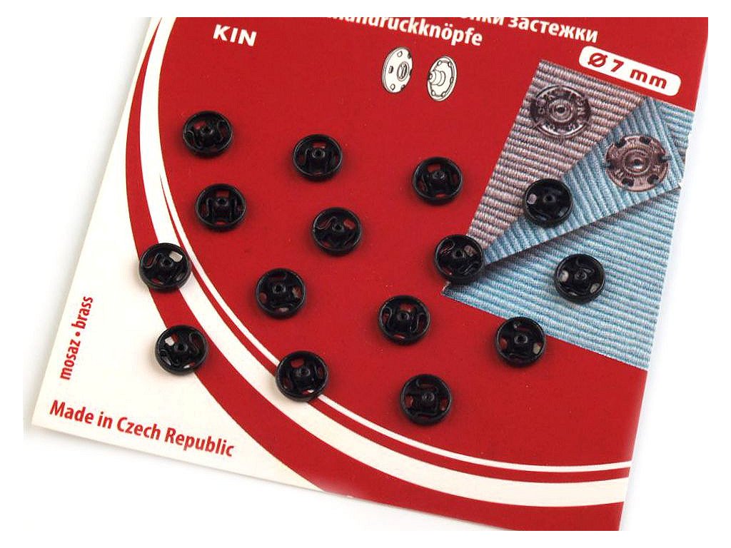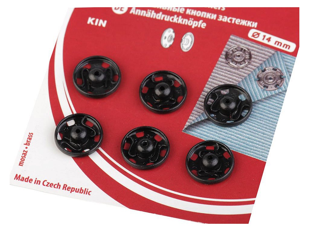 Velikost 5 má průměr: díl pérová část 13,9 mm, díl kulička 13 mm. Na kartě je 6 knoflíků.